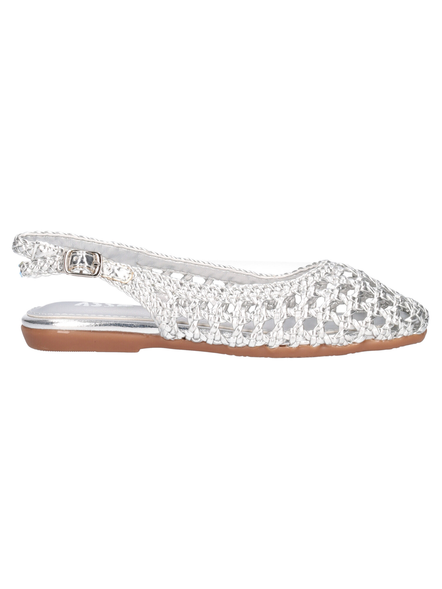 Ballerina traforata Asso da bambina in ecopelle argento con punta squadrata, sottopiede imbottito in ecopelle e fondo in gomma.