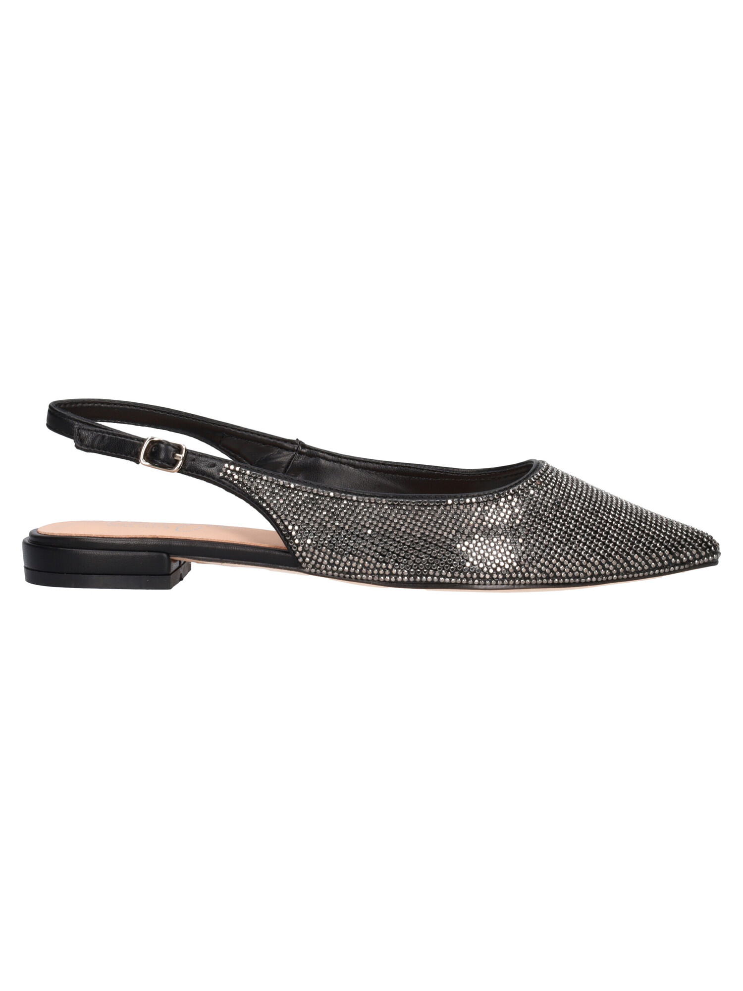 Ballerina a punta Cristin da donna in ecopelle nera con strass, sottopiede imbottito in pelle e fondo in gomma.