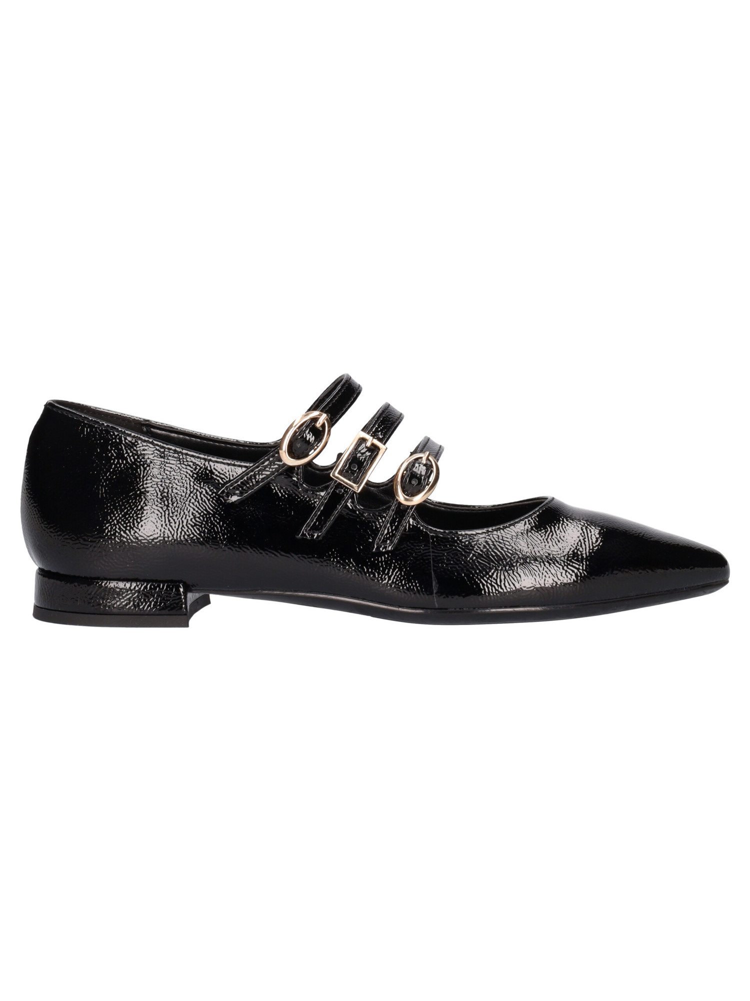 Ballerina a punta Liviana da donna in naplack nero con fasce regolabili, fodera in ecopelle, sottopiede in vera pelle e fondo in gomma.