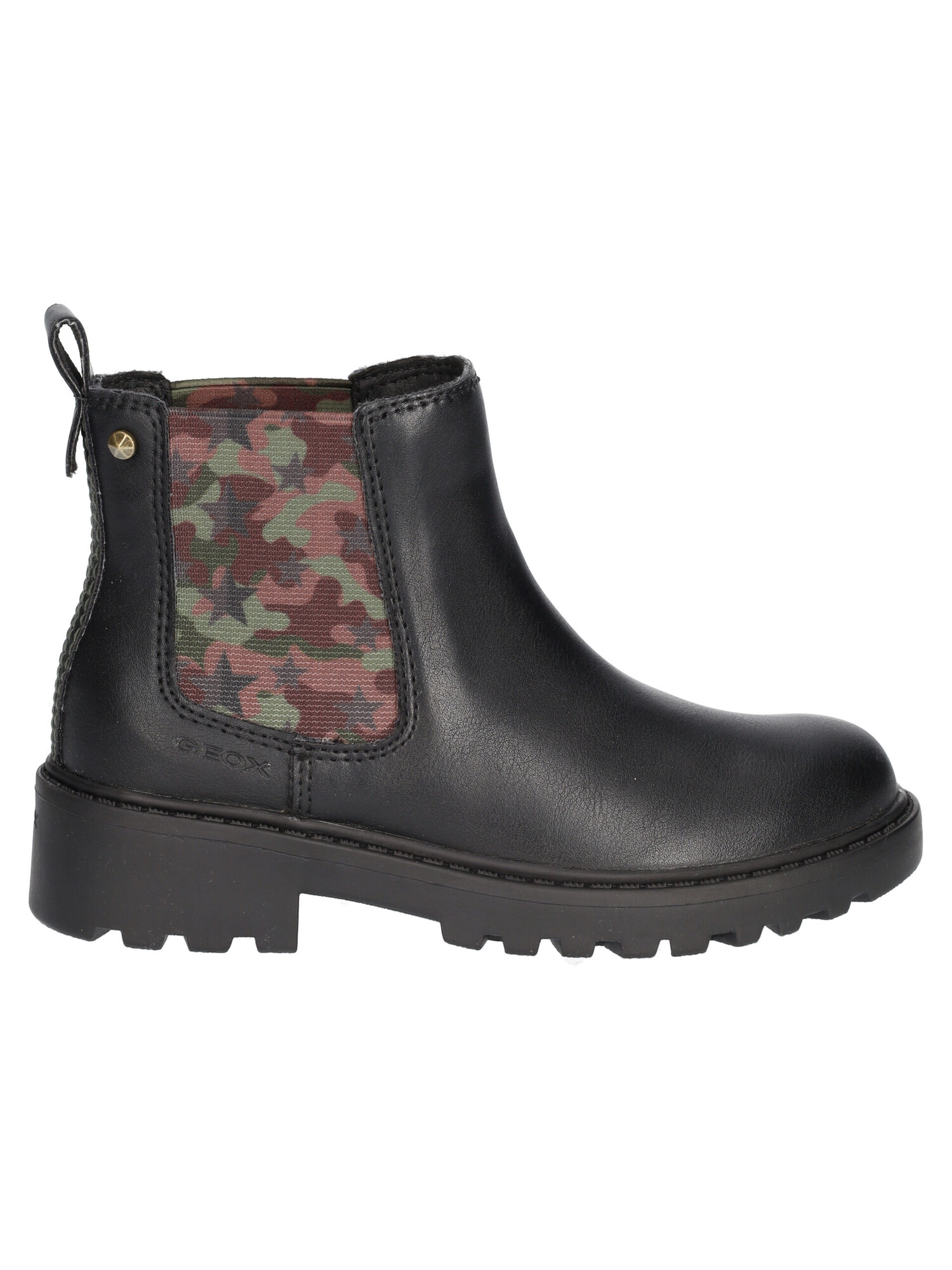 Beatles Geox Casey in ecopelle nera con doppio elastico camouflage laterale e pratica linguetta posteriore per una rapida calzata. Sottopiede estraibile in tessuto e fondo in gomma antiscivolo con tacco di 3cm.