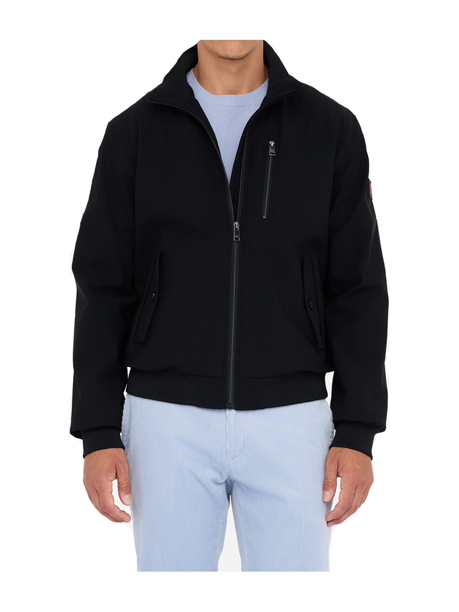 Bomber Liu Jo da uomo in tessuto tecnico nero con zip centrale, comode tasche con patta e taschino sul petto con zip.