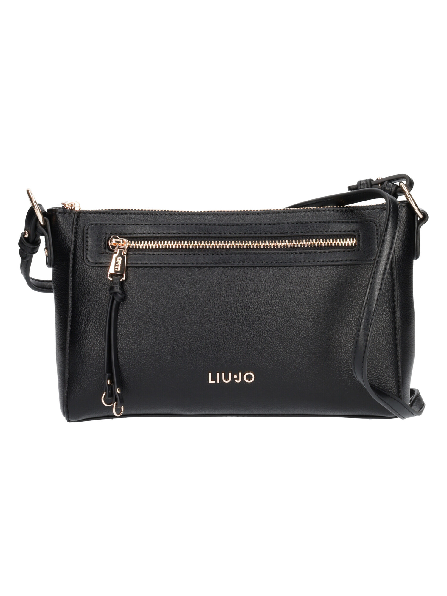 Borsetta Liu Jo da donna in ecopelle nera con tracolla regolabile e rifiniture dorate. Zip centrale, taschino interno di servizio e taschino esterno con zip.