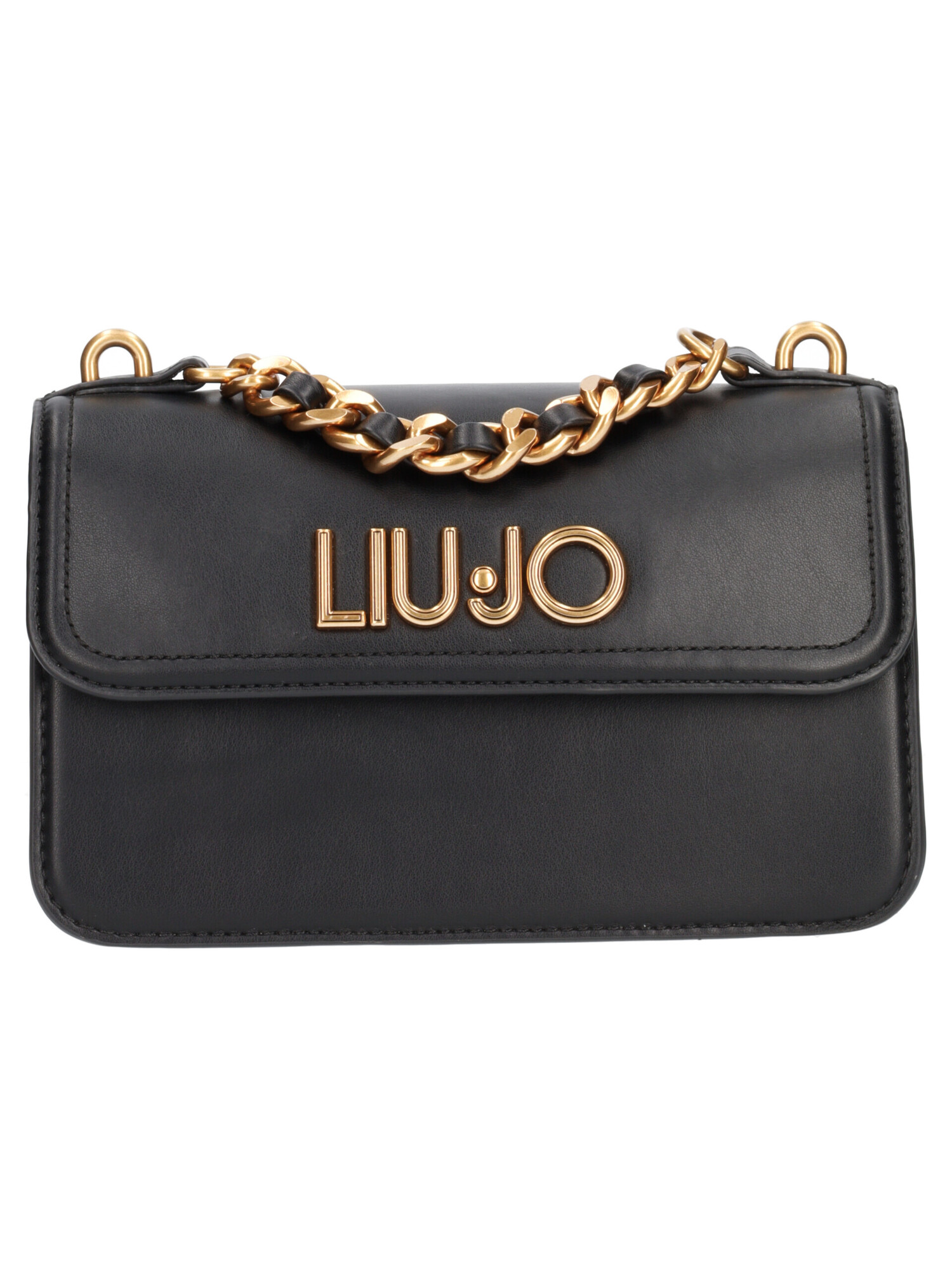 Borsetta Liu Jo da donna in ecopelle nera con rifiniture dorate e tracolla regolabile in tinta. Apertura a scatto senza zip centrale, due scomparti interni e taschino di servizio.