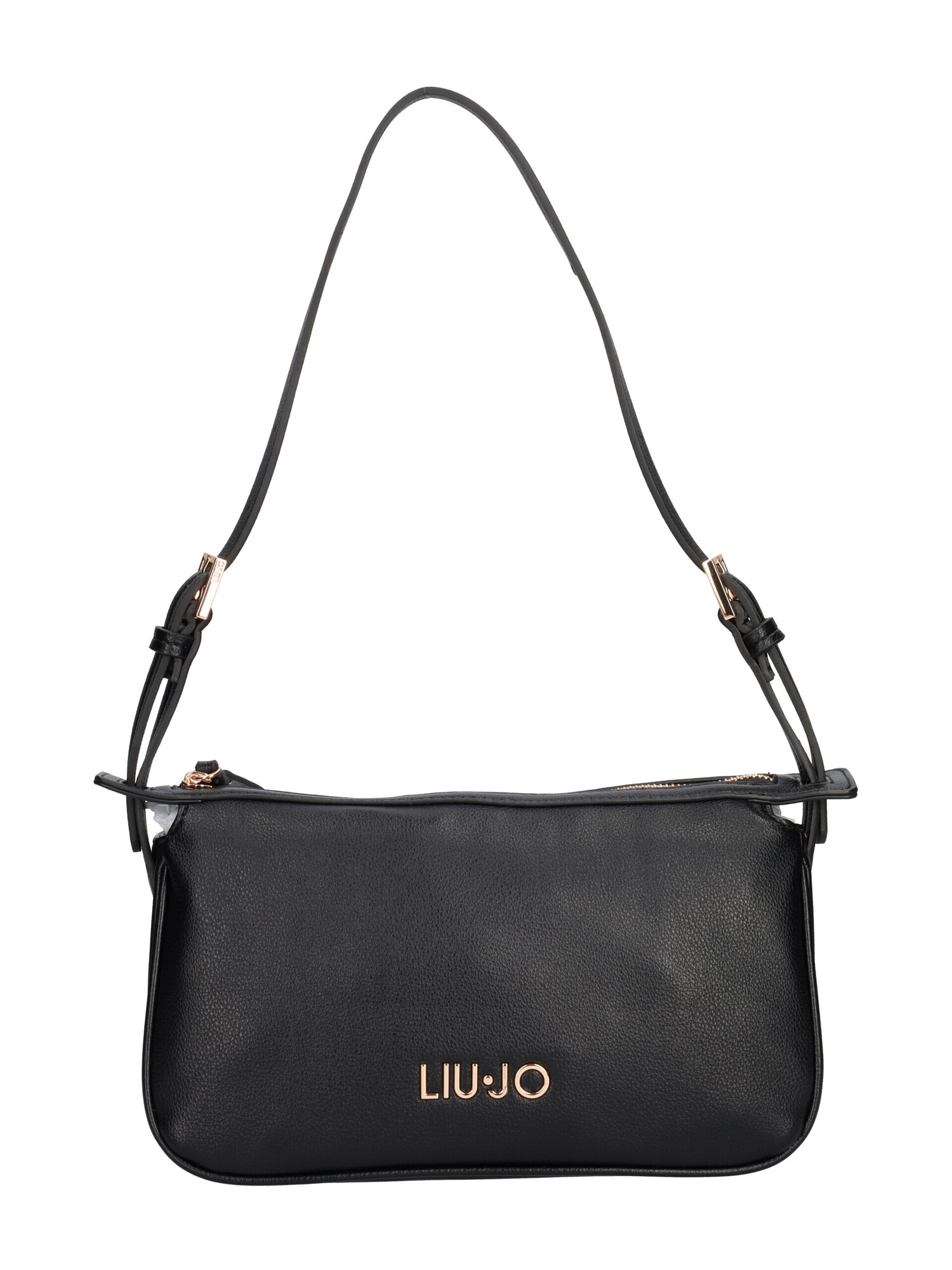 Borsetta Liu Jo da donna in morbida ecopelle nera con rifiniture dorate, manico e tracolla regolabili. Borsa con zip centrale e taschini interni di servizio.
