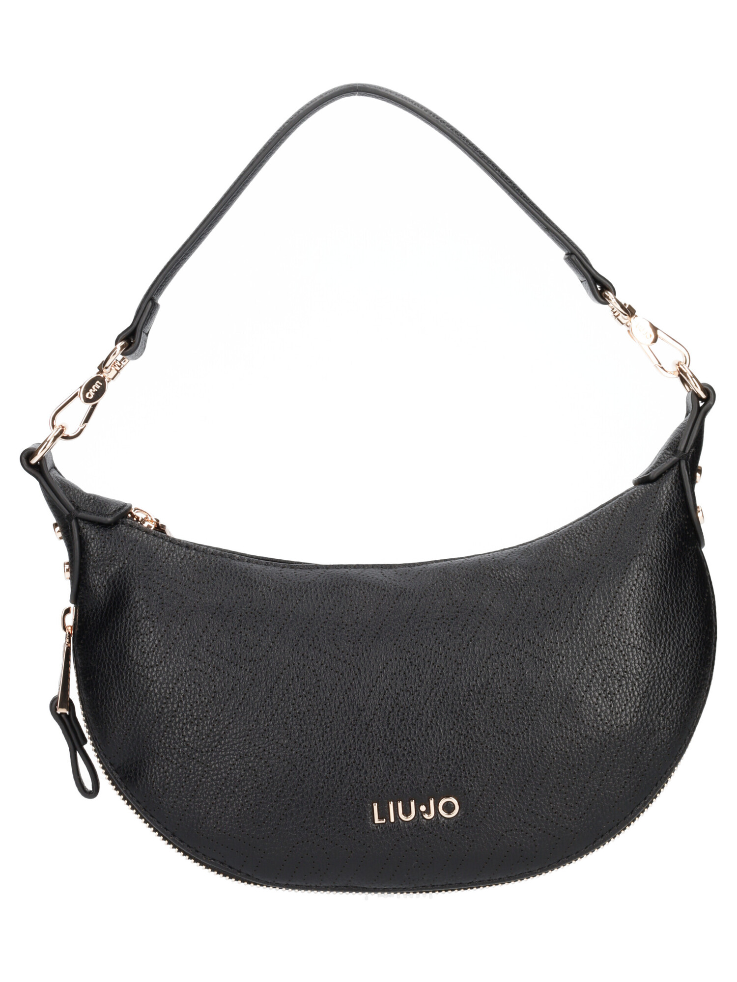 Borsetta Liu Jo da donna in ecopelle logata nera con manico staccabile e tracolla regolabile in tessuto logato in tinta zip centrale, taschino interno di servizio e soffietto al fondo per stringere o allargare la borsa.