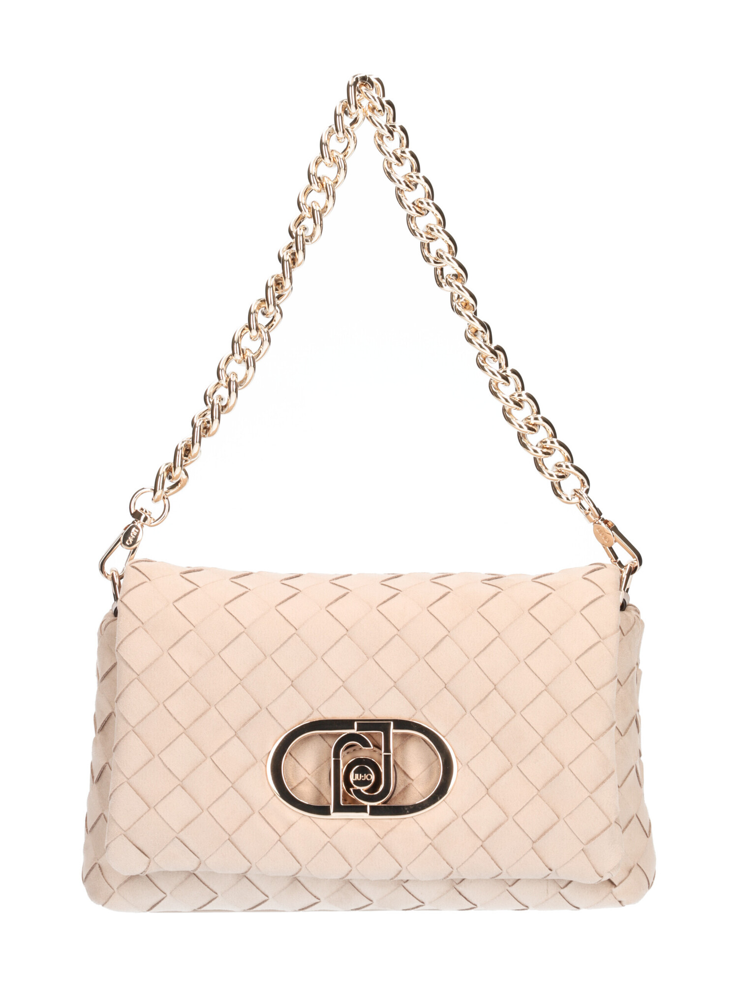 Borsa a tracolla Liu Jo La Puffy da donna in similcamoscio beige con rifiniture dorate, manico di catena e tracolla regolabile in ecopelle in tinta. Chiusura con automatico, no zip centrale taschino interno di servizio.