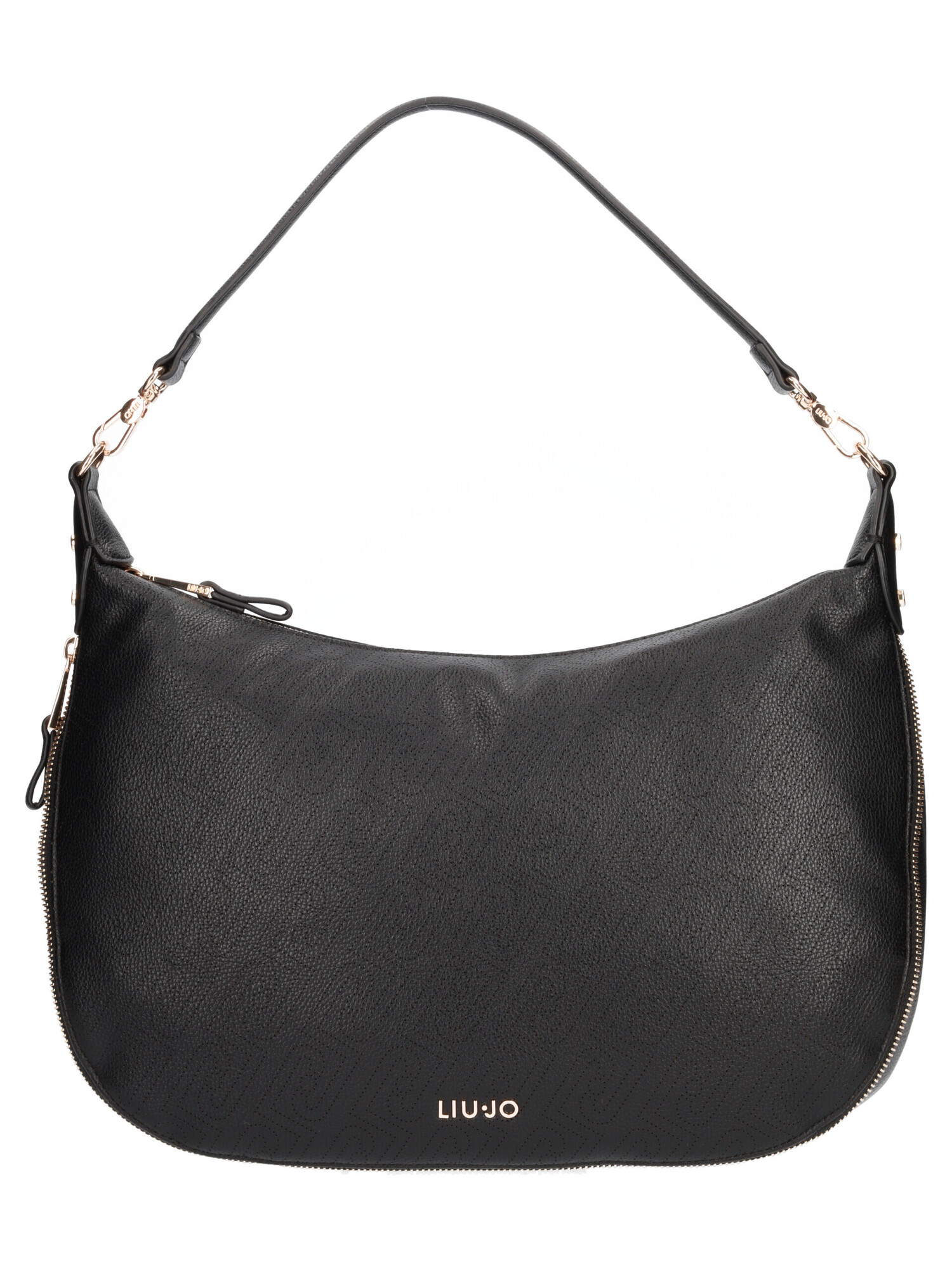 Shopping bag Liu Jo da donna in morbida ecopelle nera monogram con rifiniture dorate, manico e tracolla regolabile in tessuto in tinta. Borsa con zip centrale e taschini interni di servizio soffietto al fondo con zip per stringere la borsa. Dimensioni: 38x23x10cm