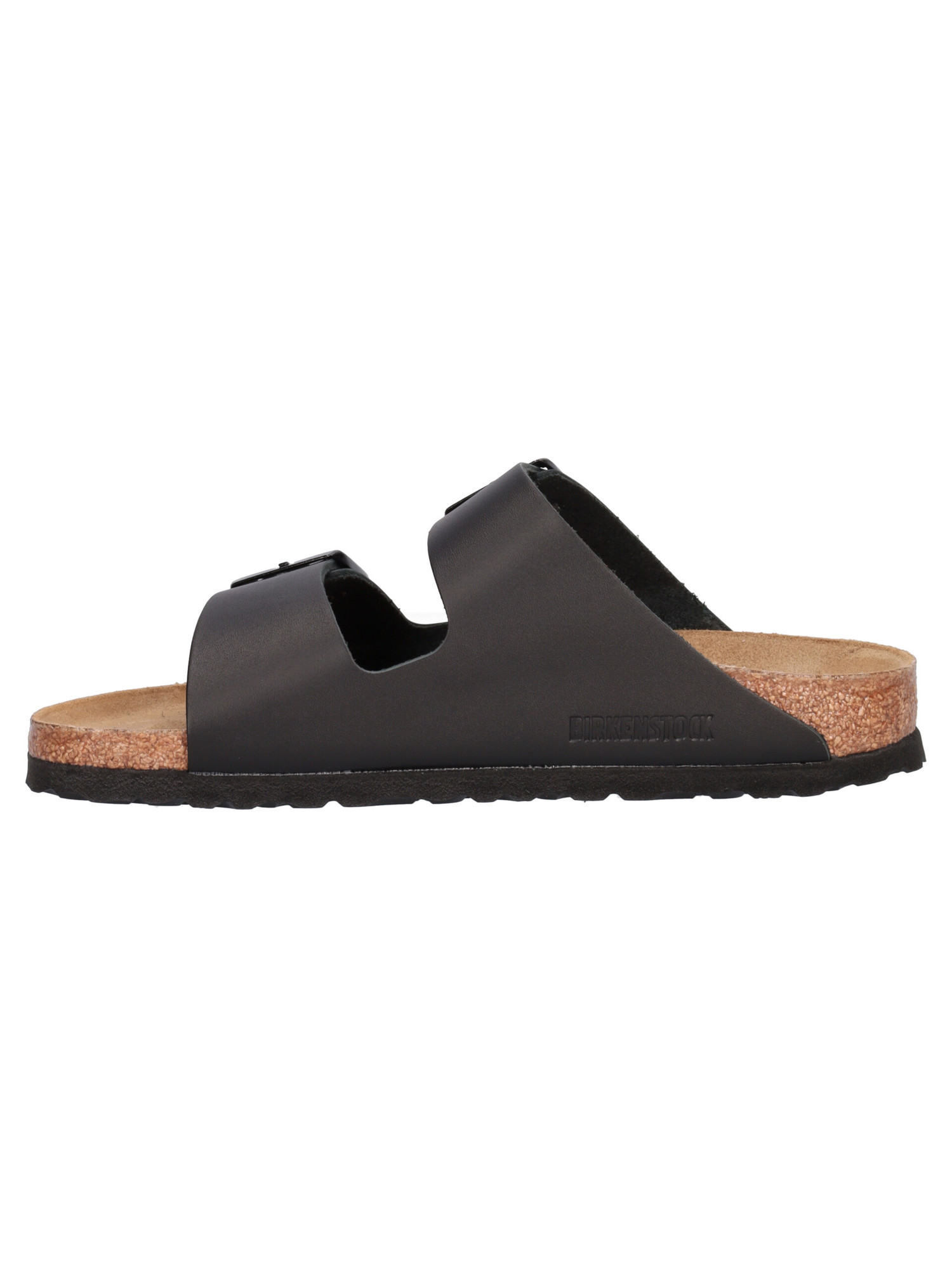 Ciabatta Birkenstock Arizona unisex in pelle nera con doppia fascia regolabile fodera in tessuto, sottopiede in vera pelle e fondo in gomma.