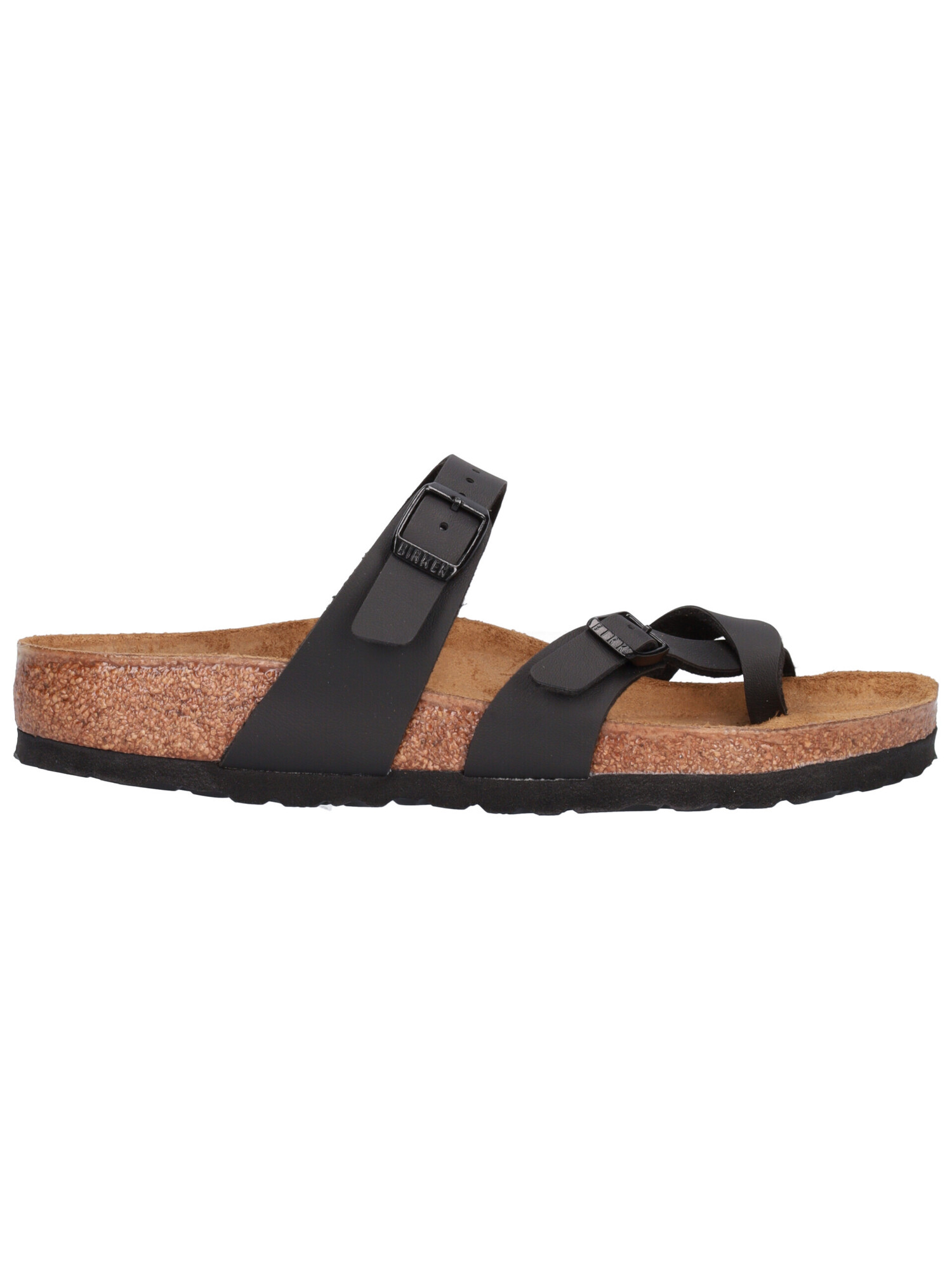 Sandalo infrapollice Birkenstock Mayari da donna in ecopelle nera con sottopiede in vera pelle e fondo in gomma antiscivolo.