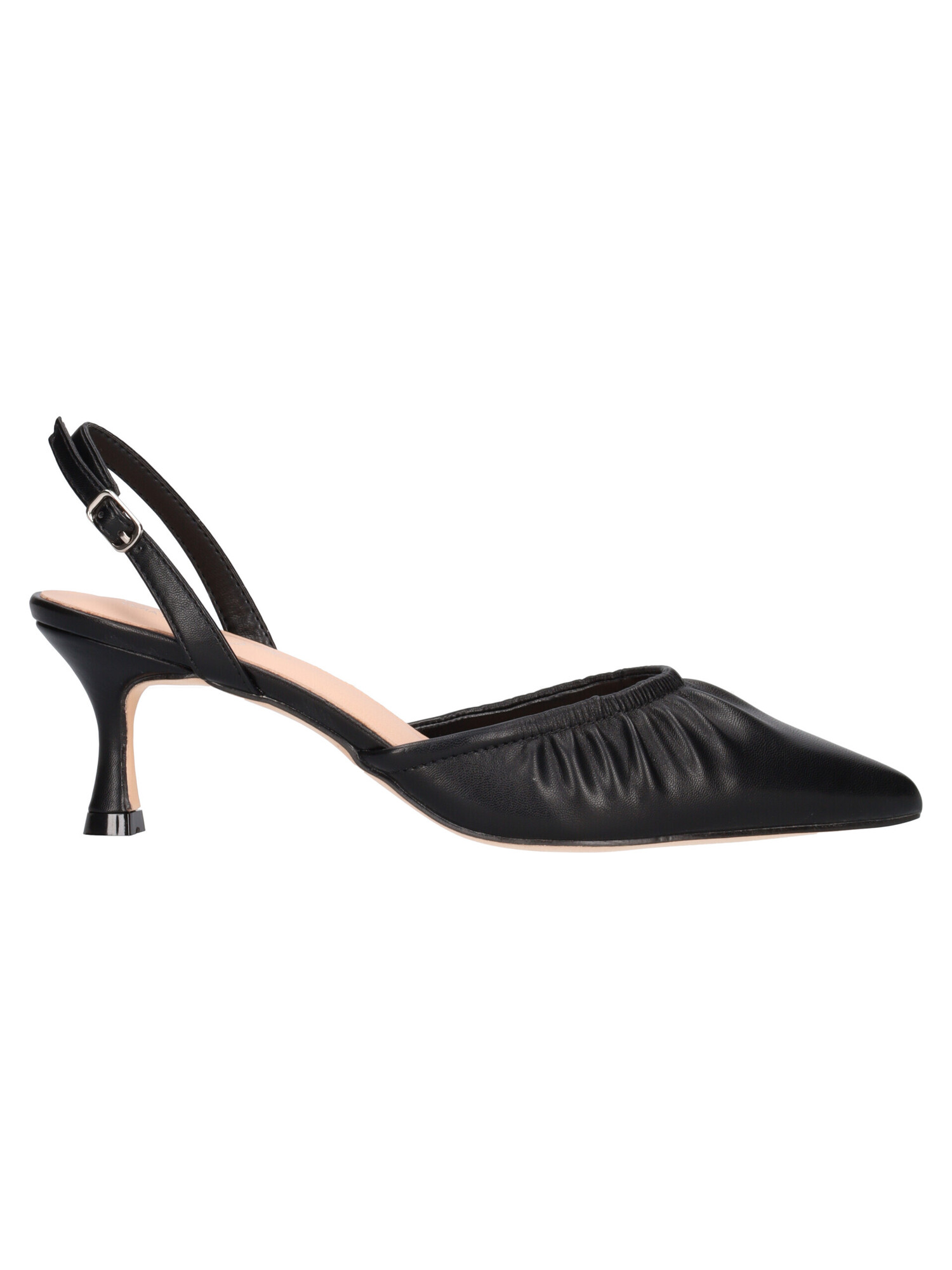 Decollete slingback a punta Cristin da donna in ecopelle nera con sottopiede imbottito in ecopelle, fondo in gomma e tacco di 7cm.