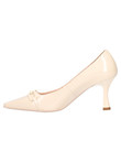Decollete a punta Nero Giardini da donna in vernice avorio con fodera e sottopiede in pelle, fondo in gomma e tacco di 7,5cm.