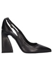 Decollete a punta Albano da donna in pelle nera con cinturino regolabile, fodera e sottopiede sempre in pelle fondo in gomma e tacco di 10cm.
