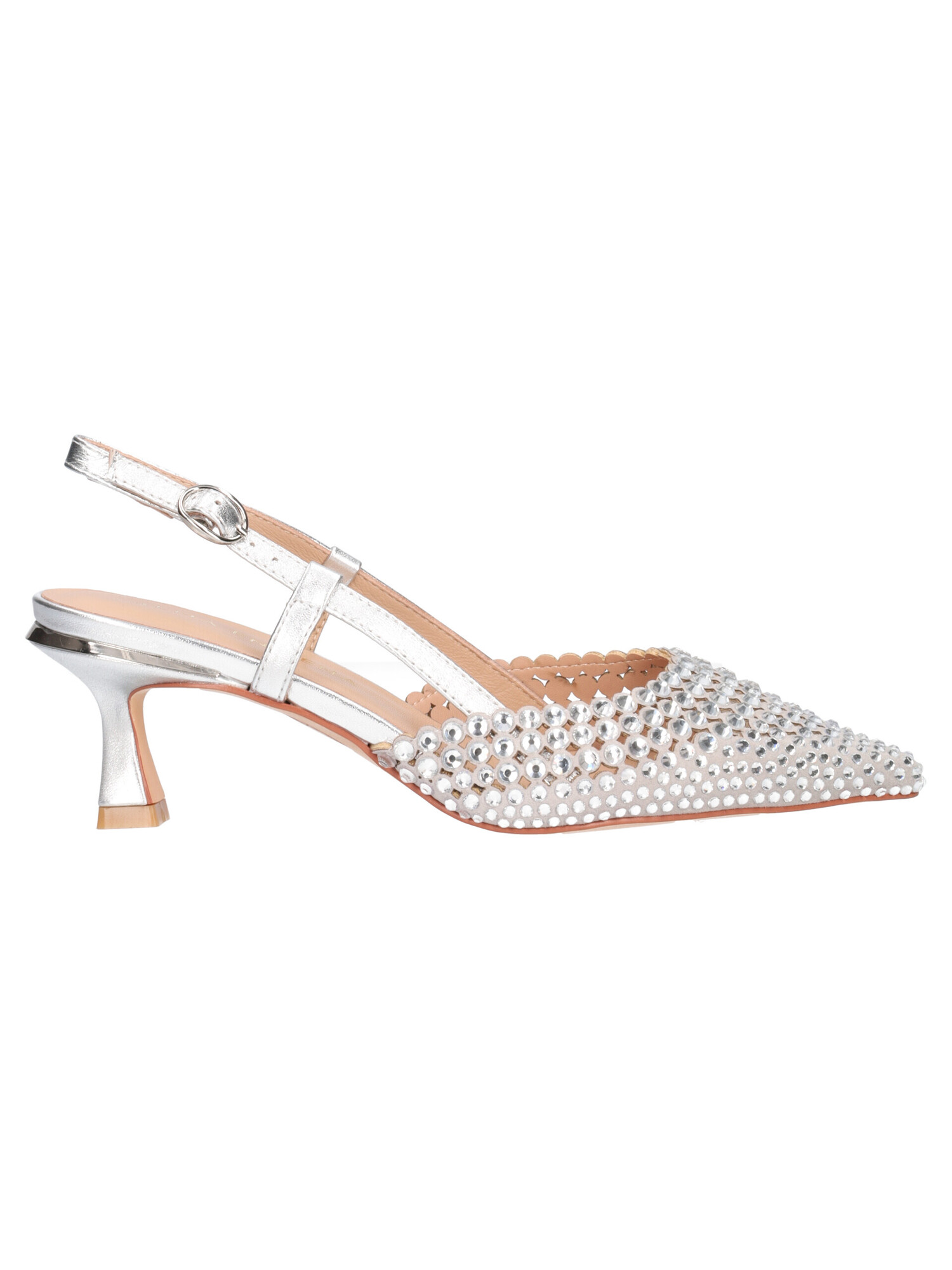Decollete modello chanel Alma en Pena da donna argento con strass sottopiede in vera pelle, fondo in gomma e tacco di 7cm.