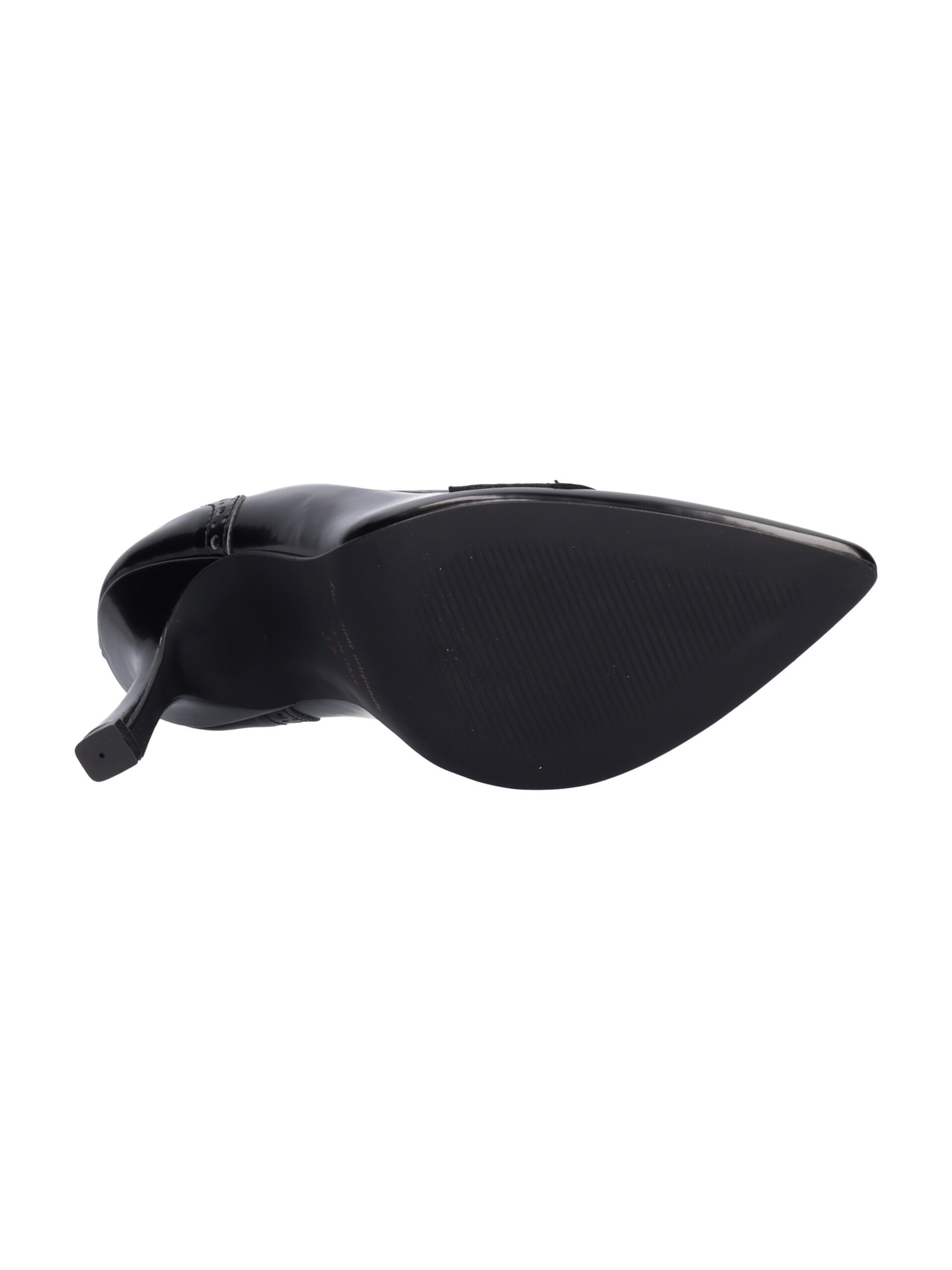 Decollete Liviana da donna in ecopelle semi lucida nera con lavorazione duilio, sottopiede in vera pelle, fondo in gomma e tacco di 10cm.