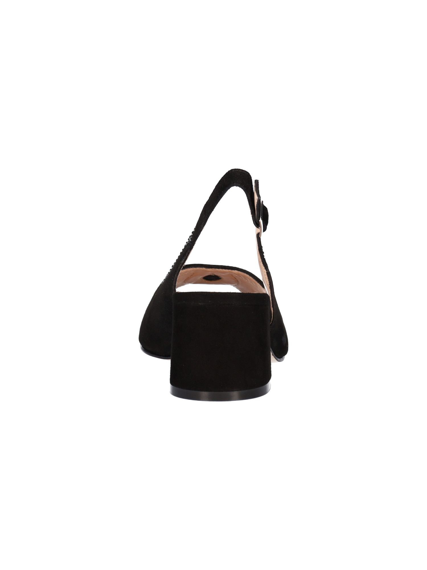 Decollete open toe Melluso da donna in pelle scamosciata nera con strass in tinta, sottopiede in pelle e fondo in gomma con tacco di 5cm.