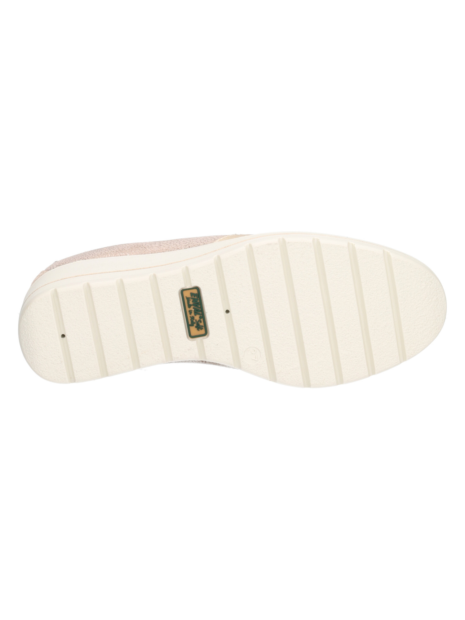 Mocassino Enval Soft da donna in similcamoscio beige con fodera in tessuto, sottopiede estraibile in pelle con memory foam fondo in gomma e zeppa di 5cm.