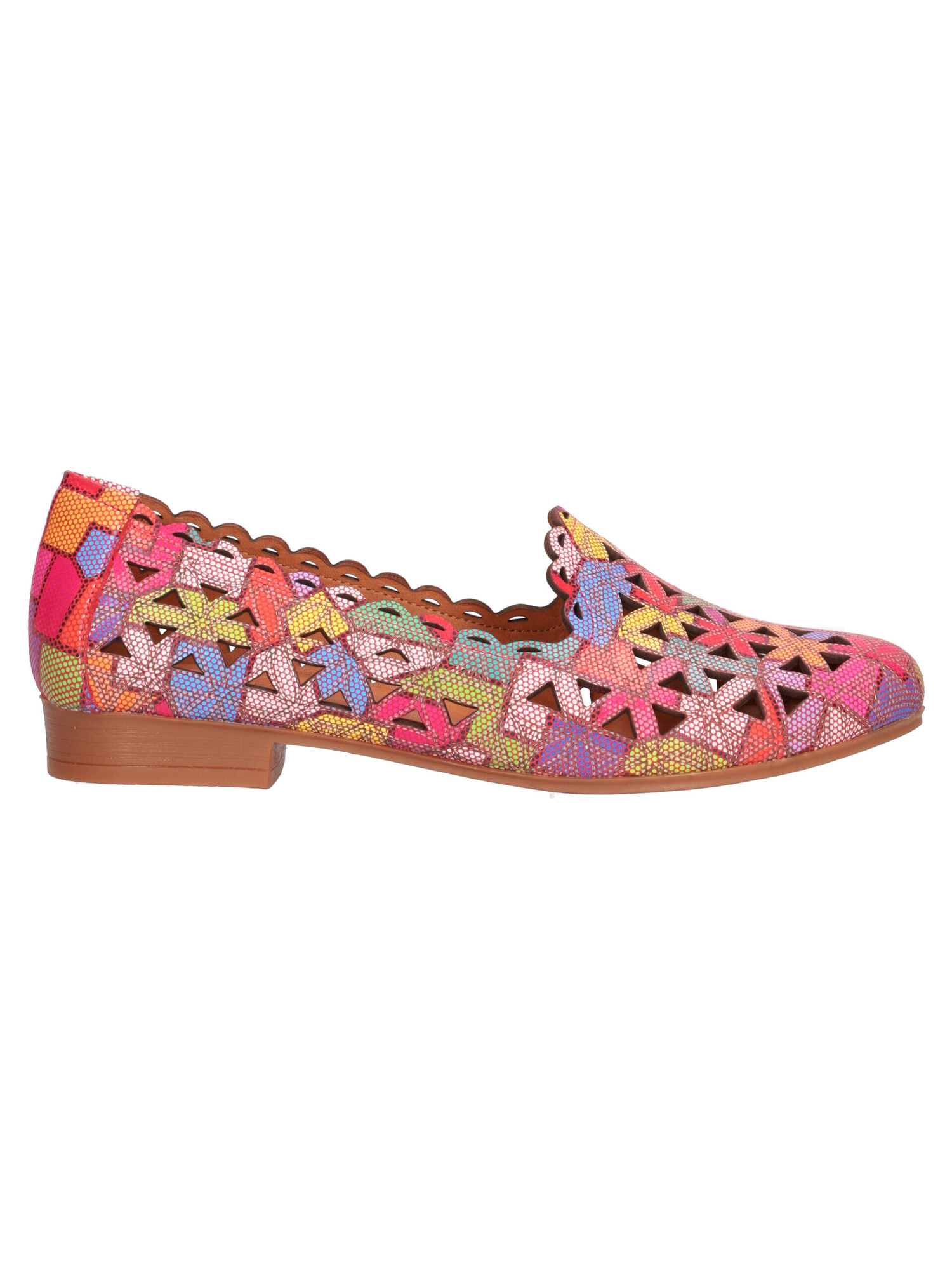 Mocassino Daphne da donna in pelle traforata multicolor con fodera e sottopiede sempre in pelle e fondo in gomma.
