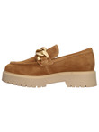 Mocassino Nero Giardini da donna in camoscio cuoio con catena dorata fodera e sottopiede in pelle, fondo in gomma antiscivolo e platform di 4cm.