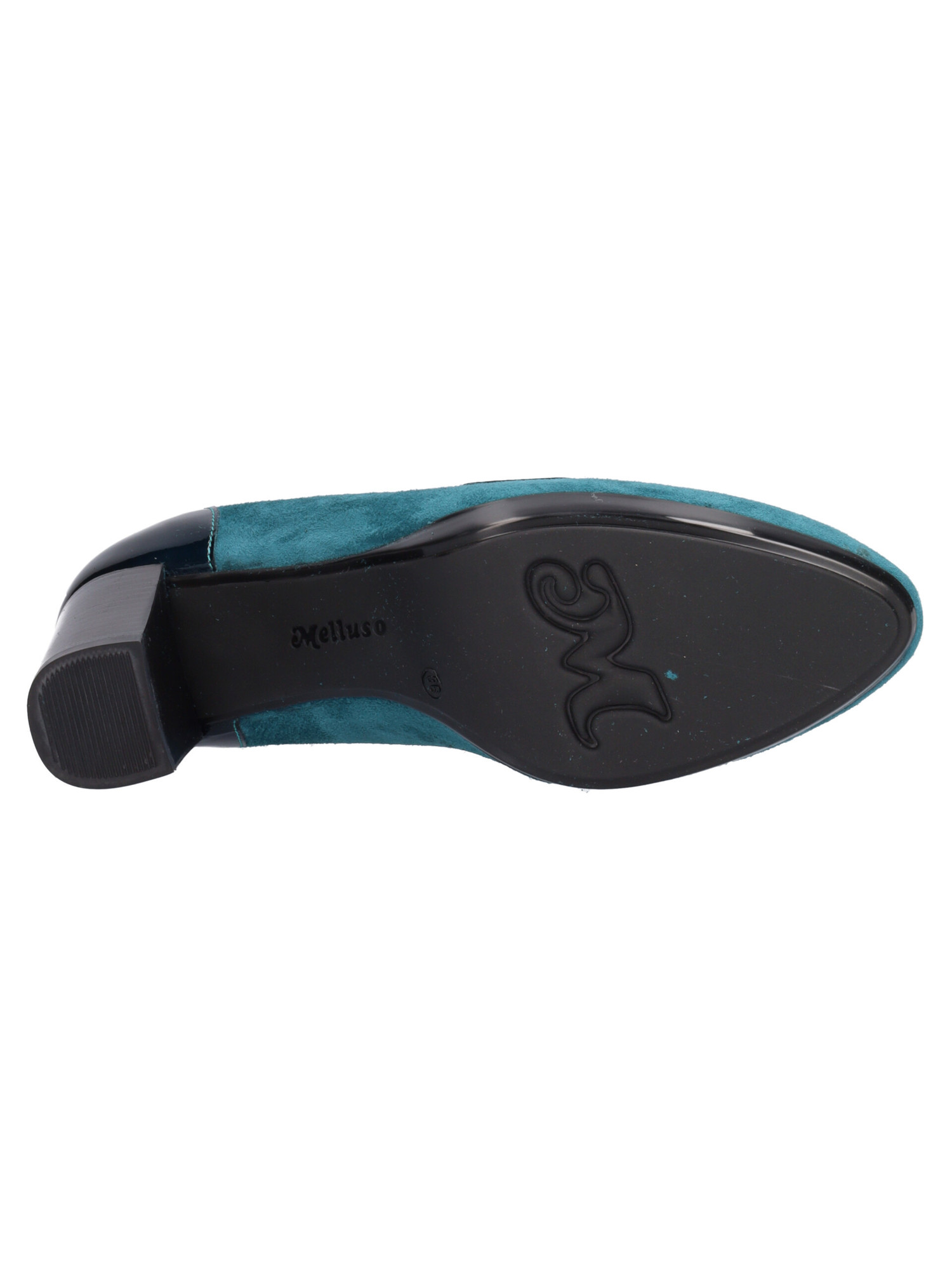 Mocassino tacco largo Melluso da donna in camoscio verde petrolio -V5400-
