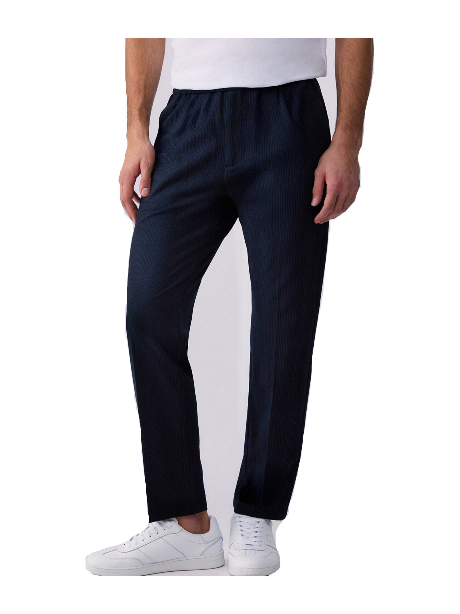 Pantalone in seersucker Liu Jo da uomo in misto cotone blu con cintone elastico in vita, vita media, gamba asciutta e comode tasche.