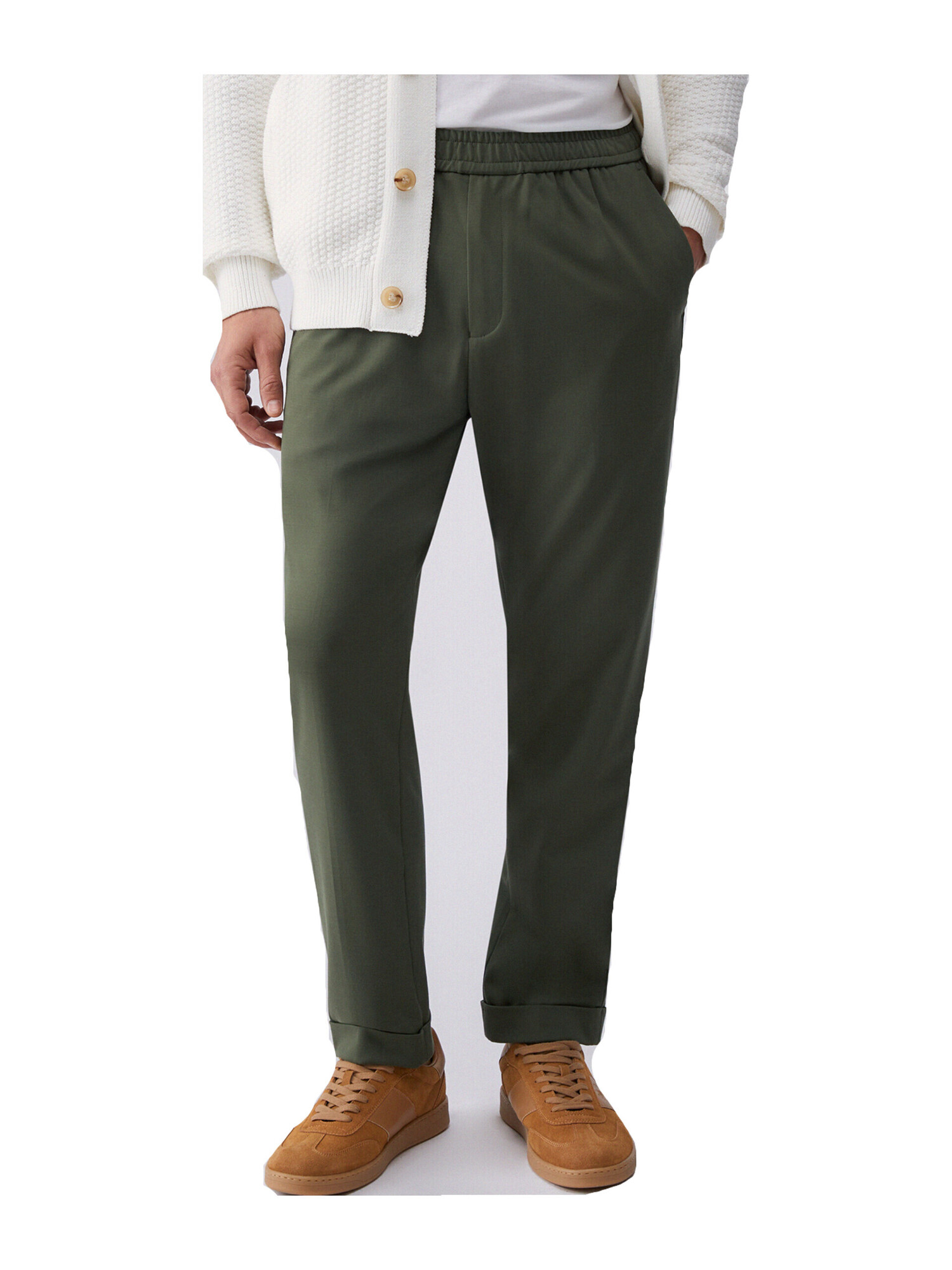 Pantalone joggins Liu Jo da uomo in misto viscosa verde con cintone elastico in vita, vita media, gamba asciutta e comode tasche.