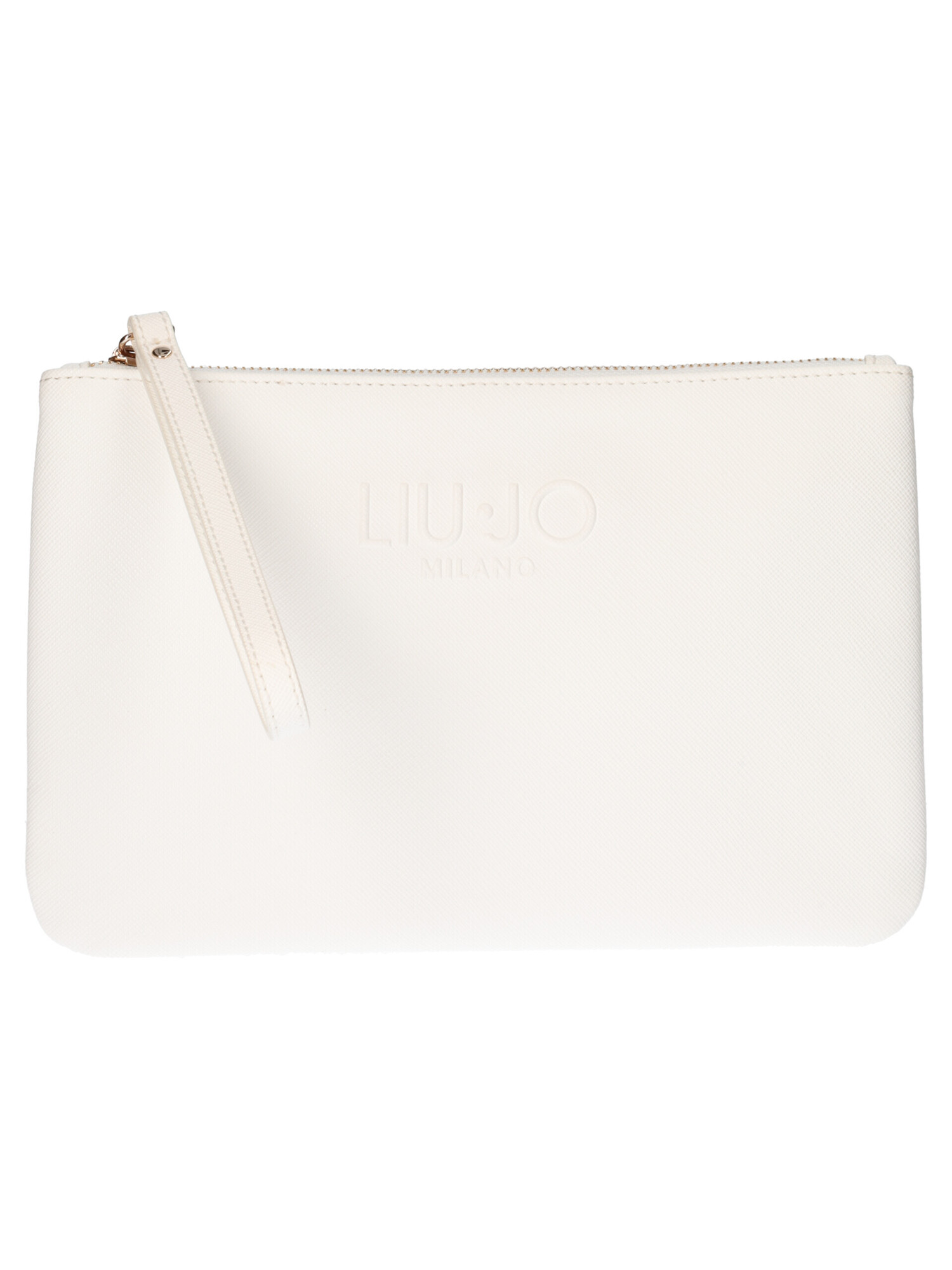Pochette Liu Jo da donna in ecopelle avorio stampa saffiano con zip centrale dorata.
