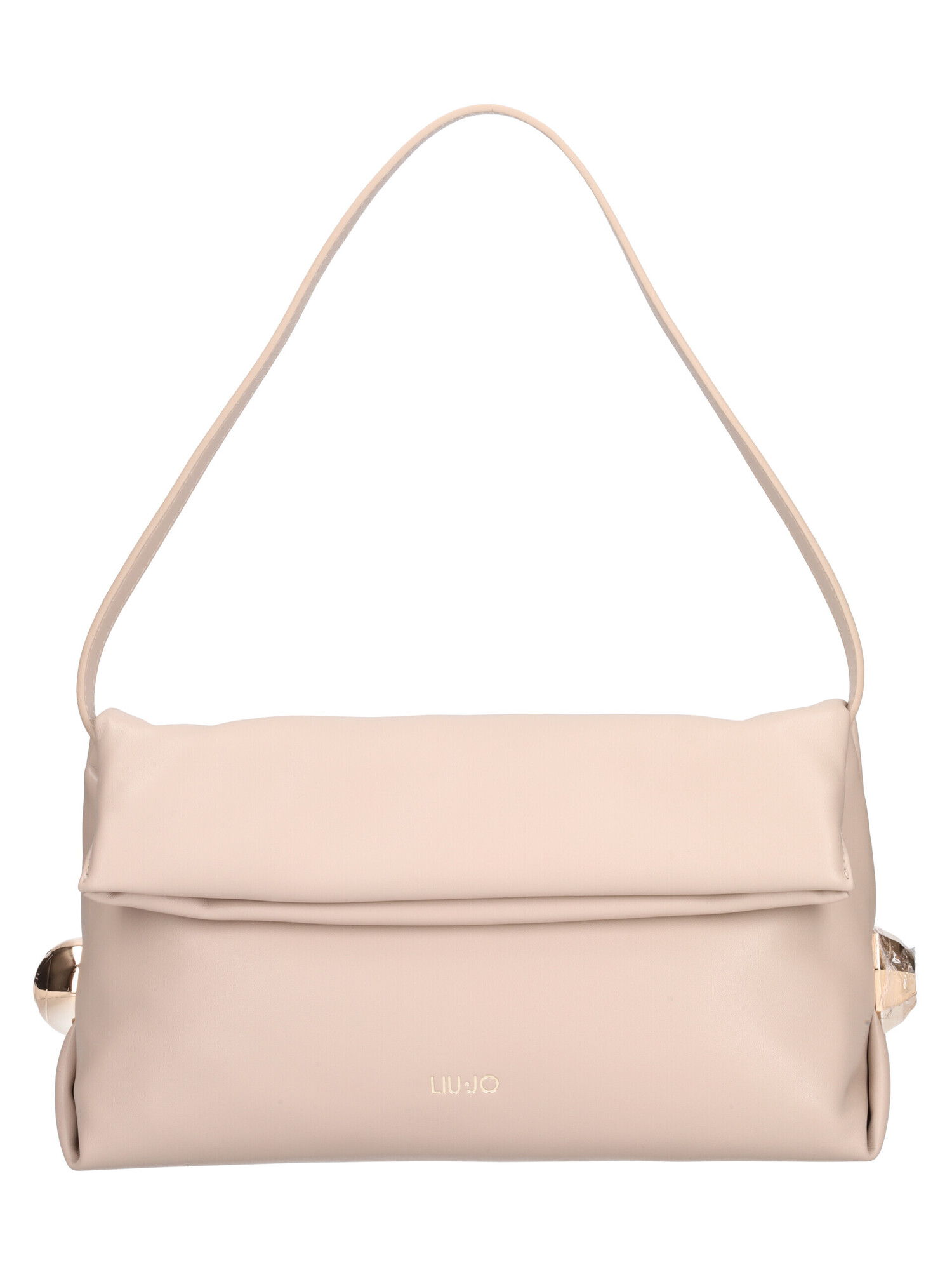 Pochettone Liu Jo da donna in morbida ecopelle beige con dettagli dorati, manico removibile e regolabile e chiusura con doppia calamita taschini interni di servizio.