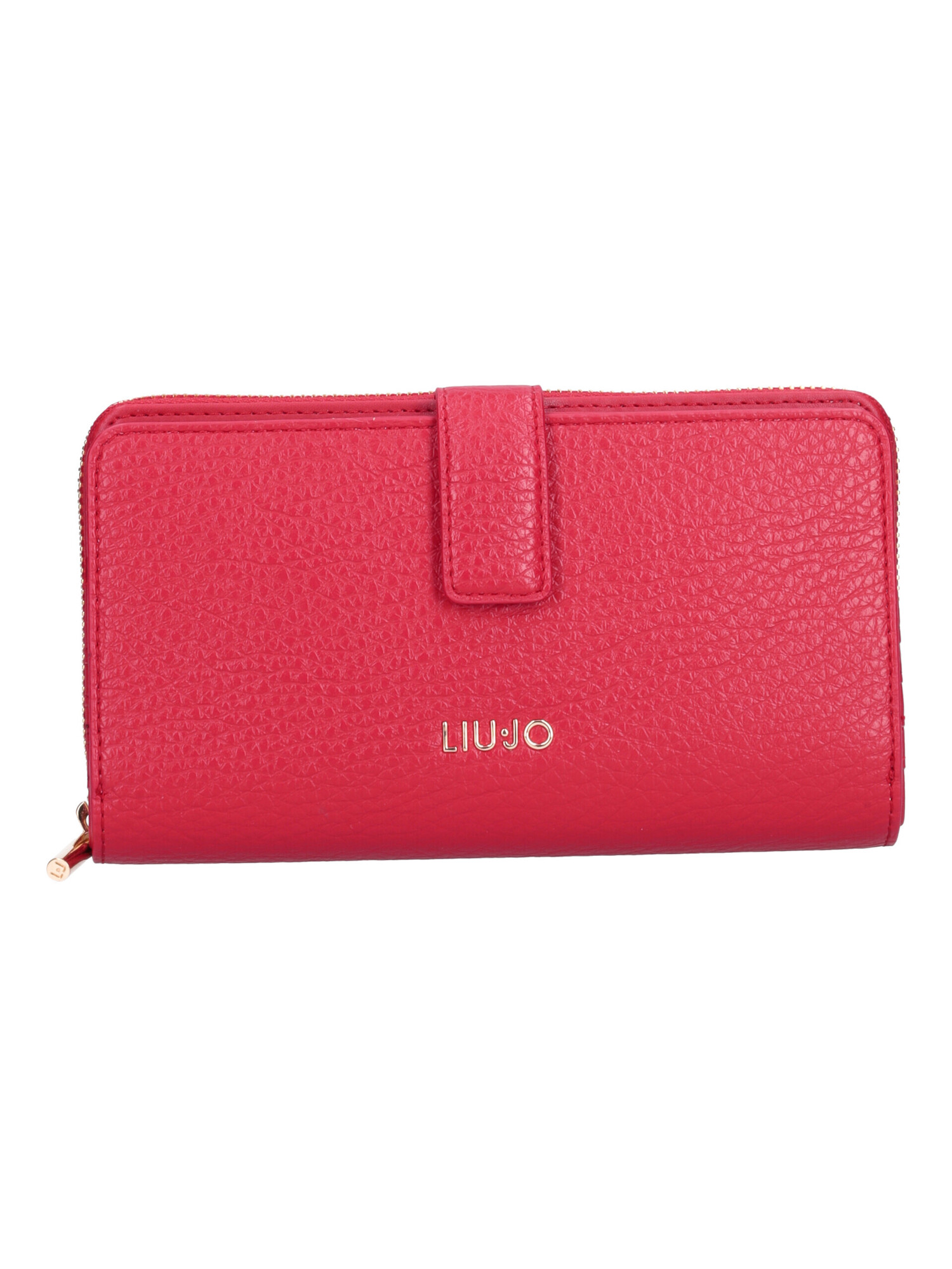 Portafoglio XL Liu Jo da donna in ecopelle martellata rossa con rifiniture dorate scomparto con bottone con tasche per le carte e scomparto con zip con tasche per carte, banconote e monete.
