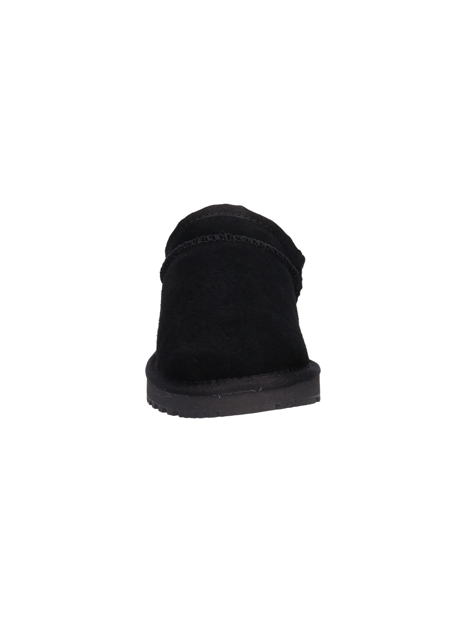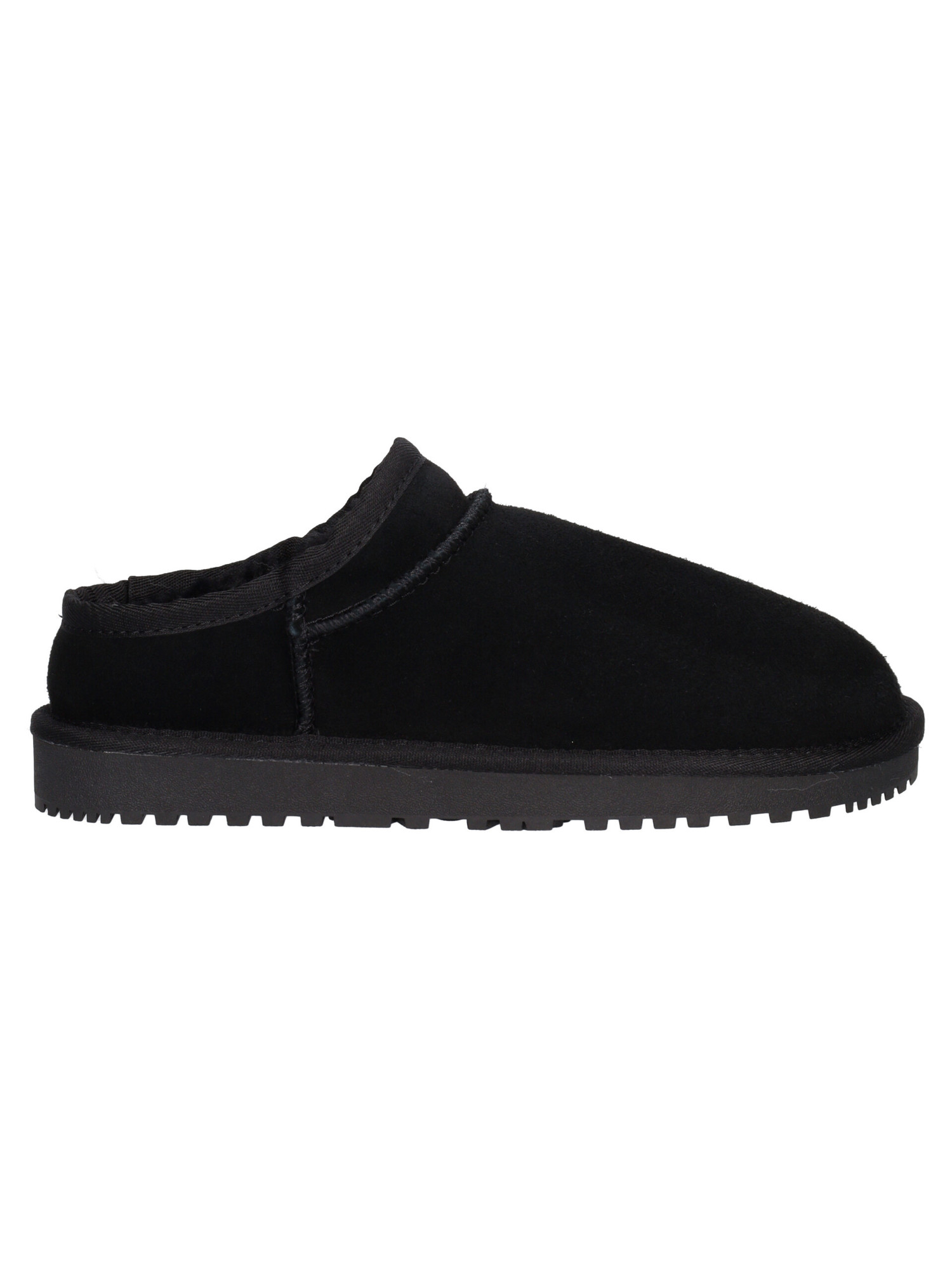 Sabot Keys da donna in pelle scamosciata nera con fodera e sottopiede in pelliccia ecologica e fondo in gomma antiscivolo.