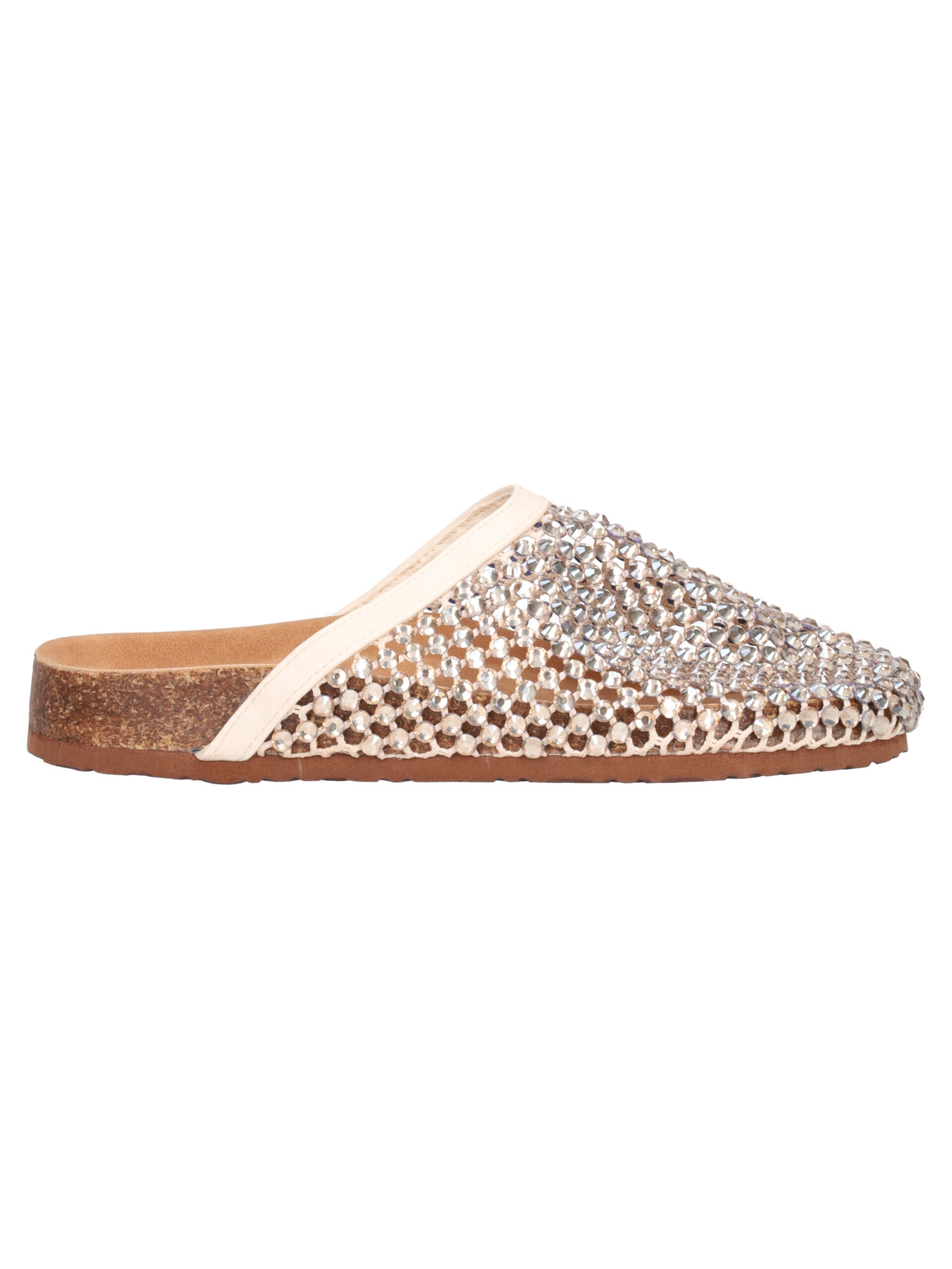 Sabot Marina Torres da donna in ecopelle avorio con strass, sottopiede in ecopelle e fondo in gomma.