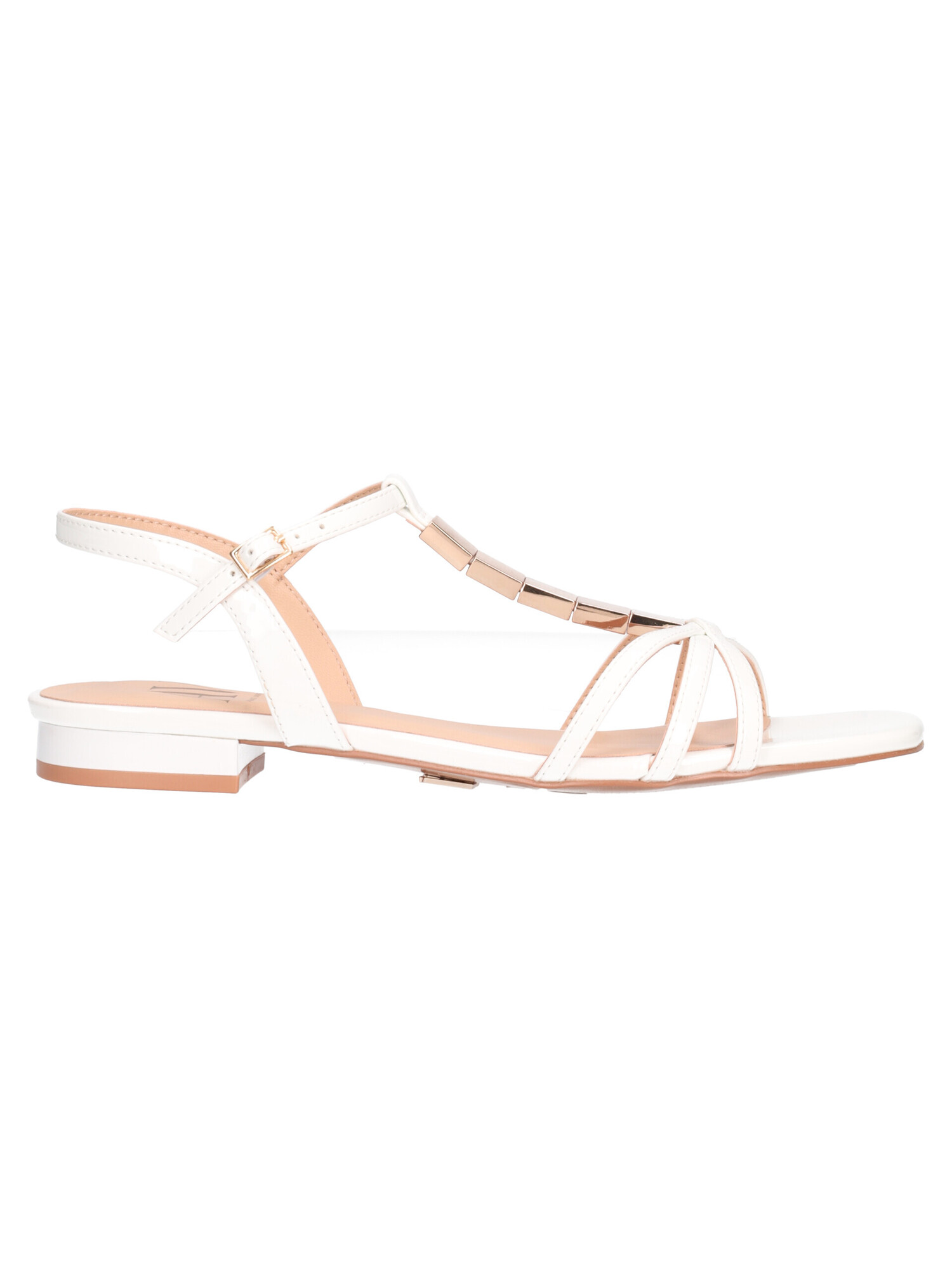Sandalo Albano Vanity da donna in vernice bianca con dettaglio dorato, punta qudrata, sottopiede in ecopelle e fondo in gomma.
