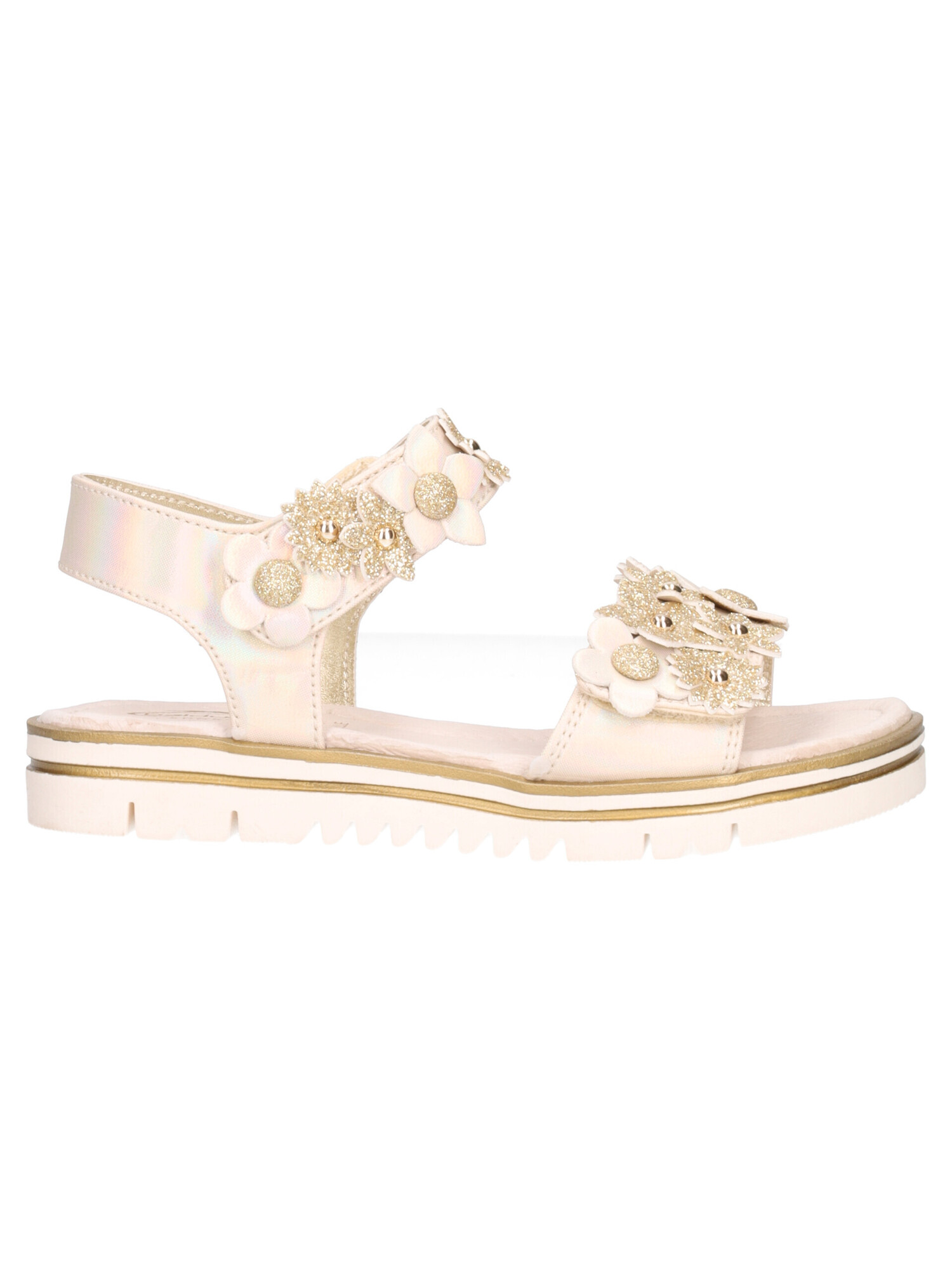 Sandalo Balducci Sport da bambina in ecopelle rosa chiaro con dettagli oro glitter e stretch regolabili sottopiede in vera pelle e fondo in gomma.