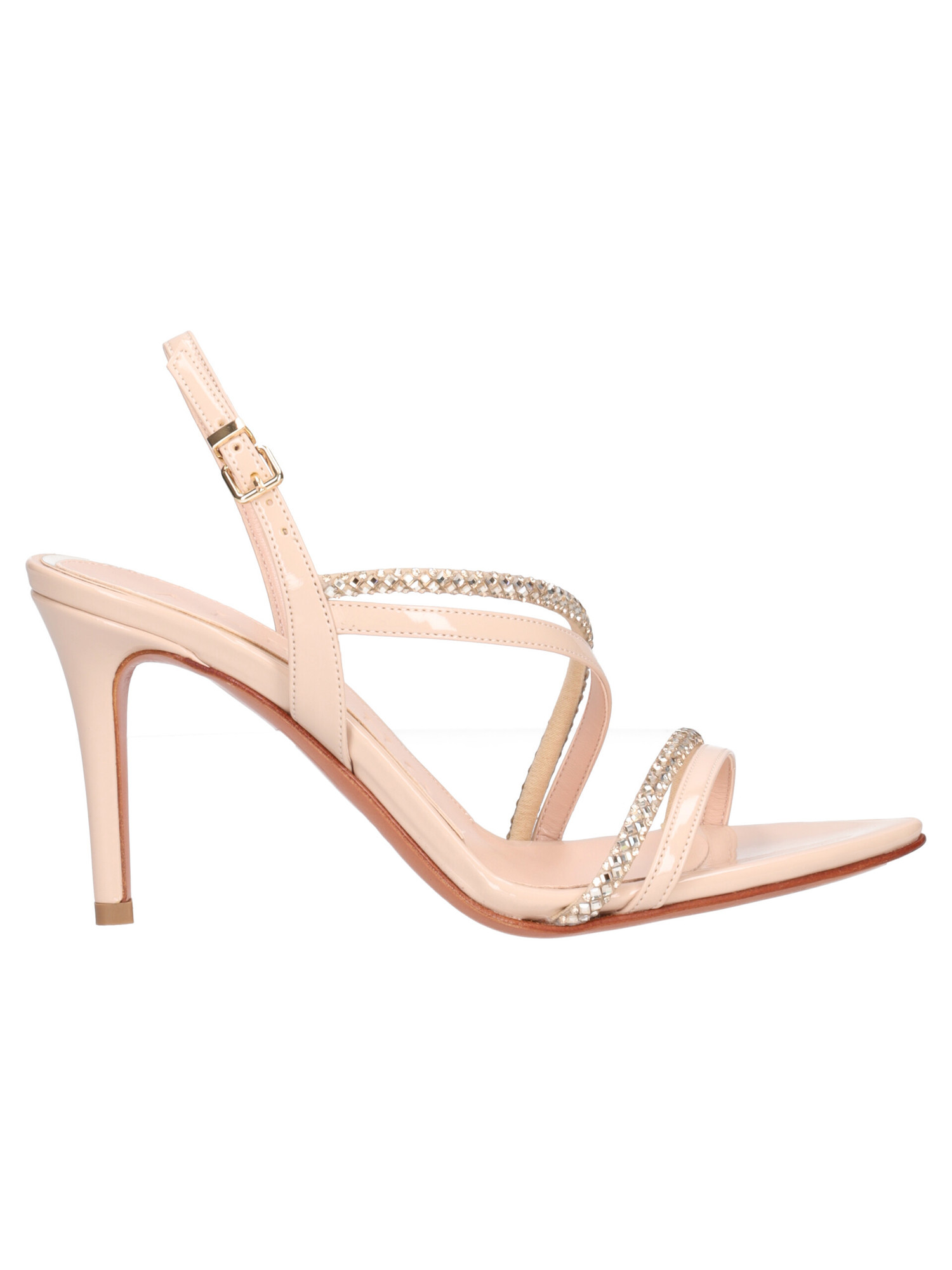 Sandalo elegante Albano da donna in vernice nude, con punta con strass sottopiede in vera pelle, fondo in vero cuoio e tacco di 8,5cm.