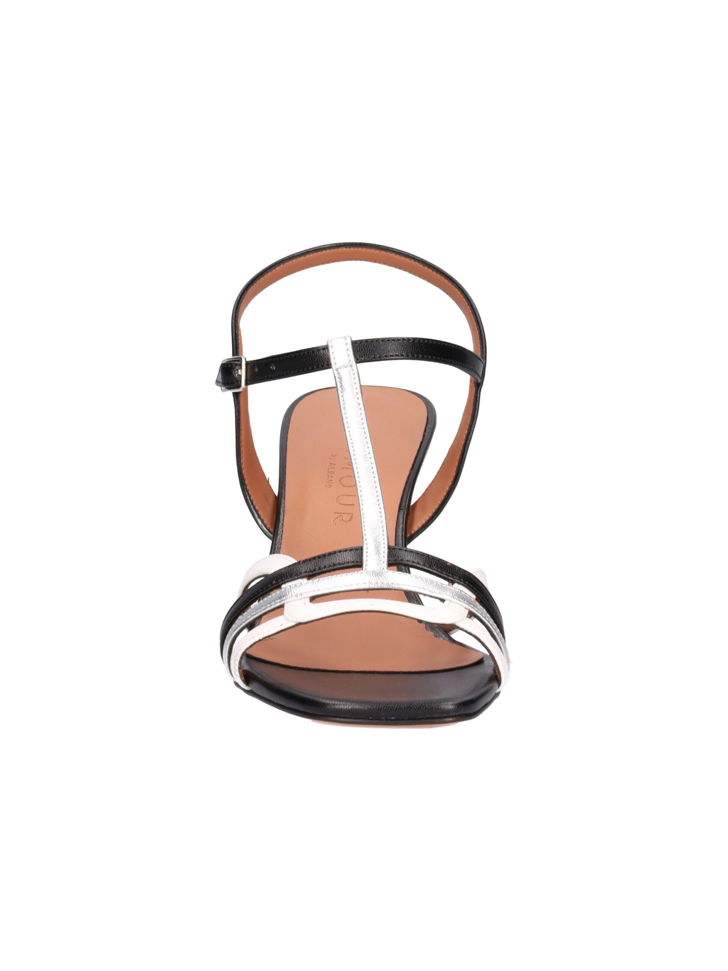 Sandalo L'Amour by Albano da donna in ecopelle nera, bianca e argento con punta quadrata sandalo con fondo in vero cuoio e tacco di 8cm.