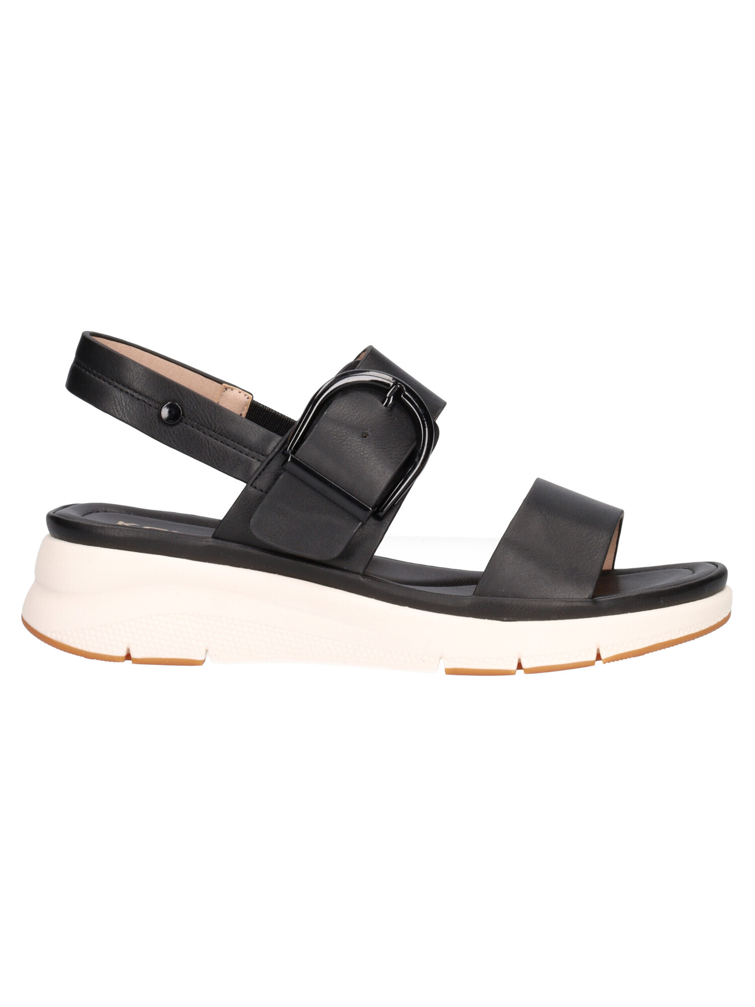 Sandalo con zeppa bassa Keys da donna in ecopelle nera -K12350-