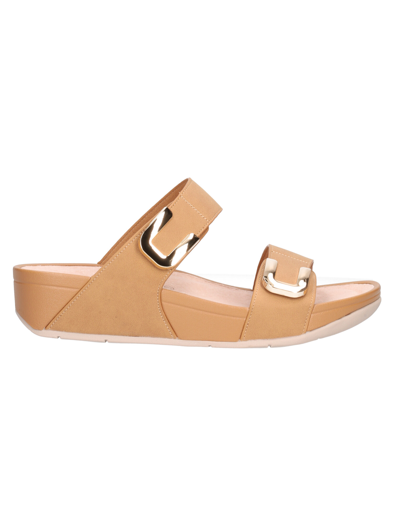 Sandalo Valleverde da donna in nubuck sintetico ed ecopelle cuoio con stretch regolabili, sottopiede in vera pelle, fondo in gomma e zeppa di 4cm.