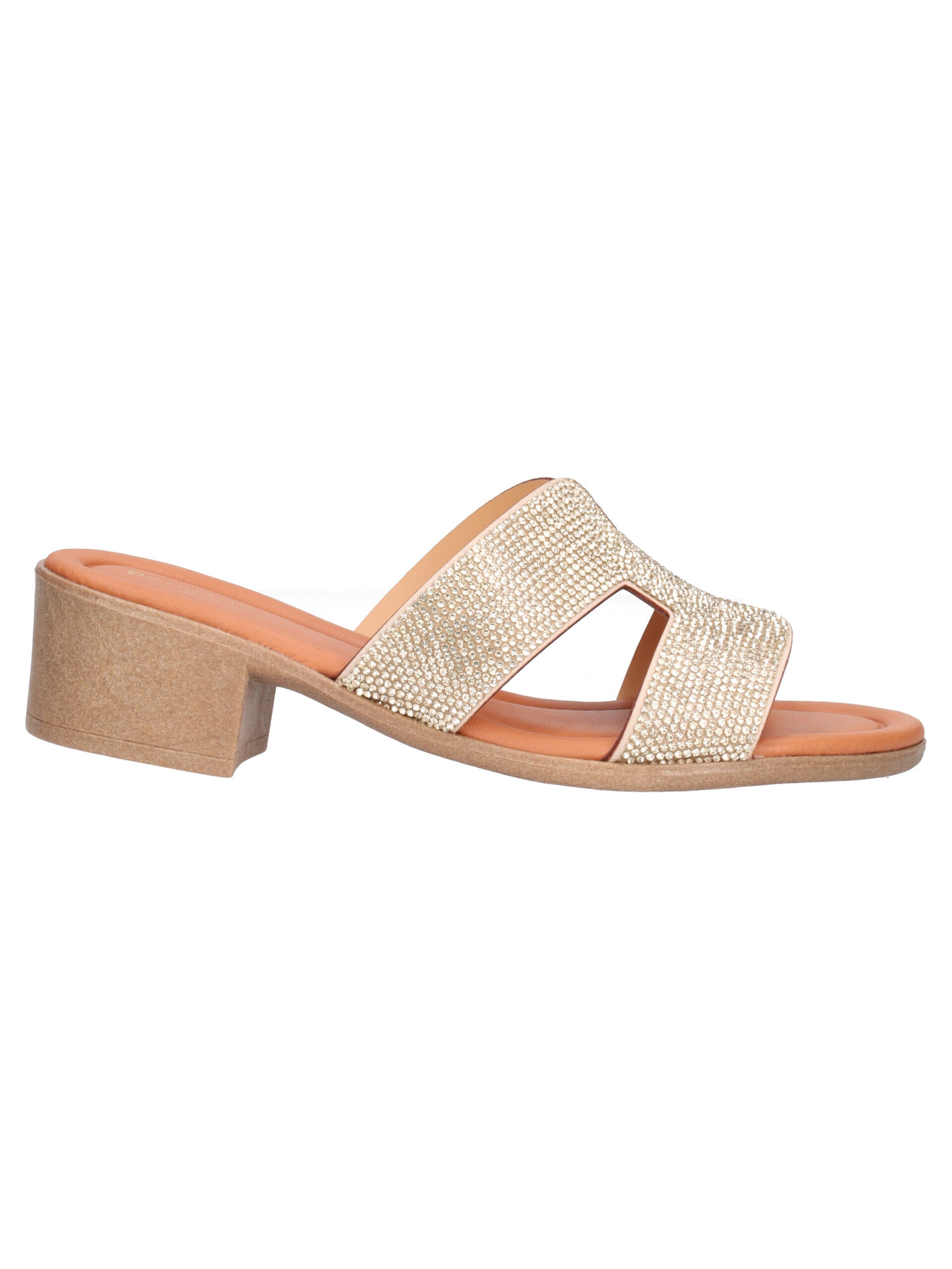 Ciabatta con tacco largo Donna Toscana da donna in pelle e strass platino -LUCCA700-