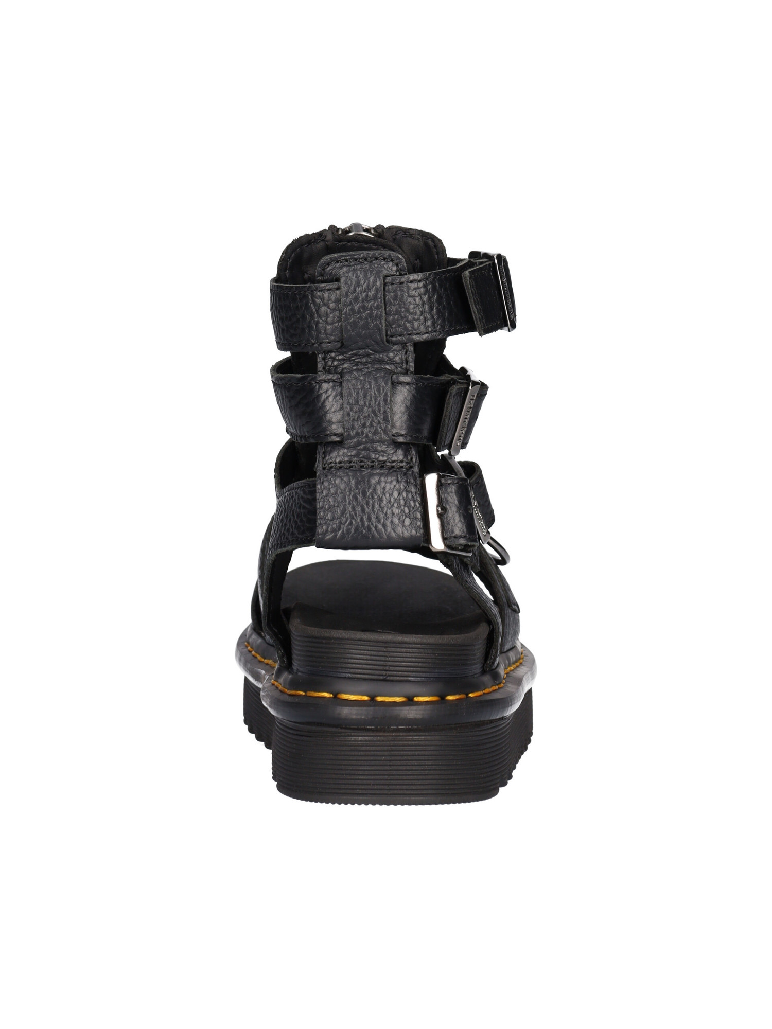 Sandalo Dr Martens Olson da donna in pelle nera bottolata con zip centrale e fibbie regolabili fondo in gomma antiscivolo con platform di 4cm.