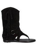 Sandalo infradito a stivaletto Sinapsi da donna in morbido camoscio giallo e verde con frange sottopiede in pelle e fondo in gomma.