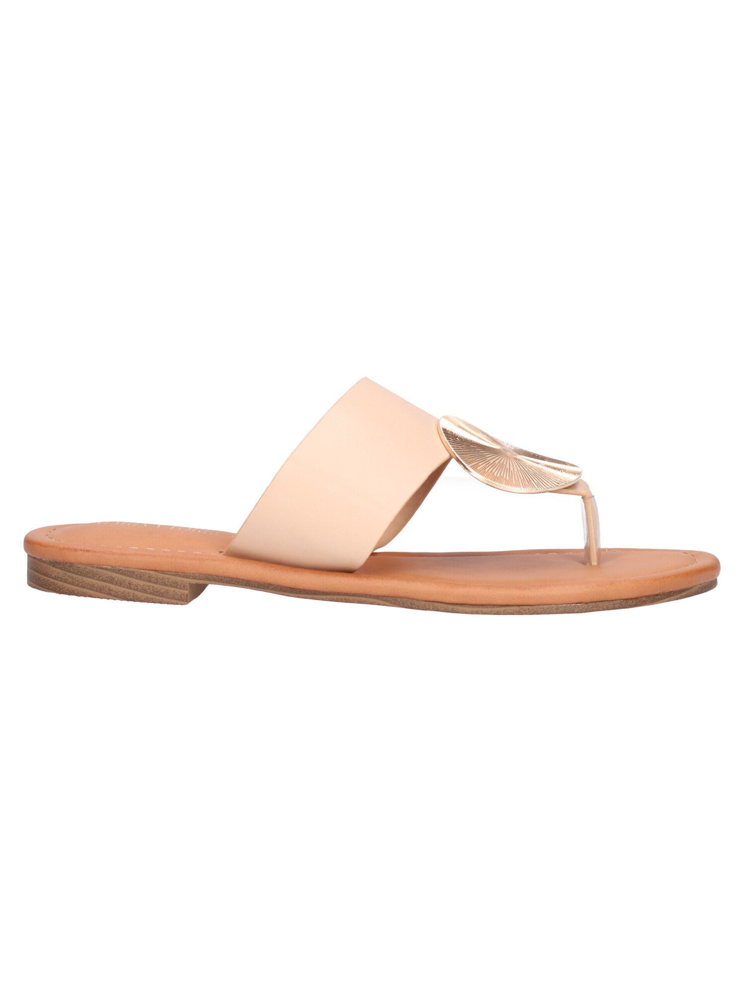 Sandalo infradito Marina Torres da donna in ecopelle beige con dettaglio dorato, sottopiede imbottito sempre in ecopelle e fondo in gomma.