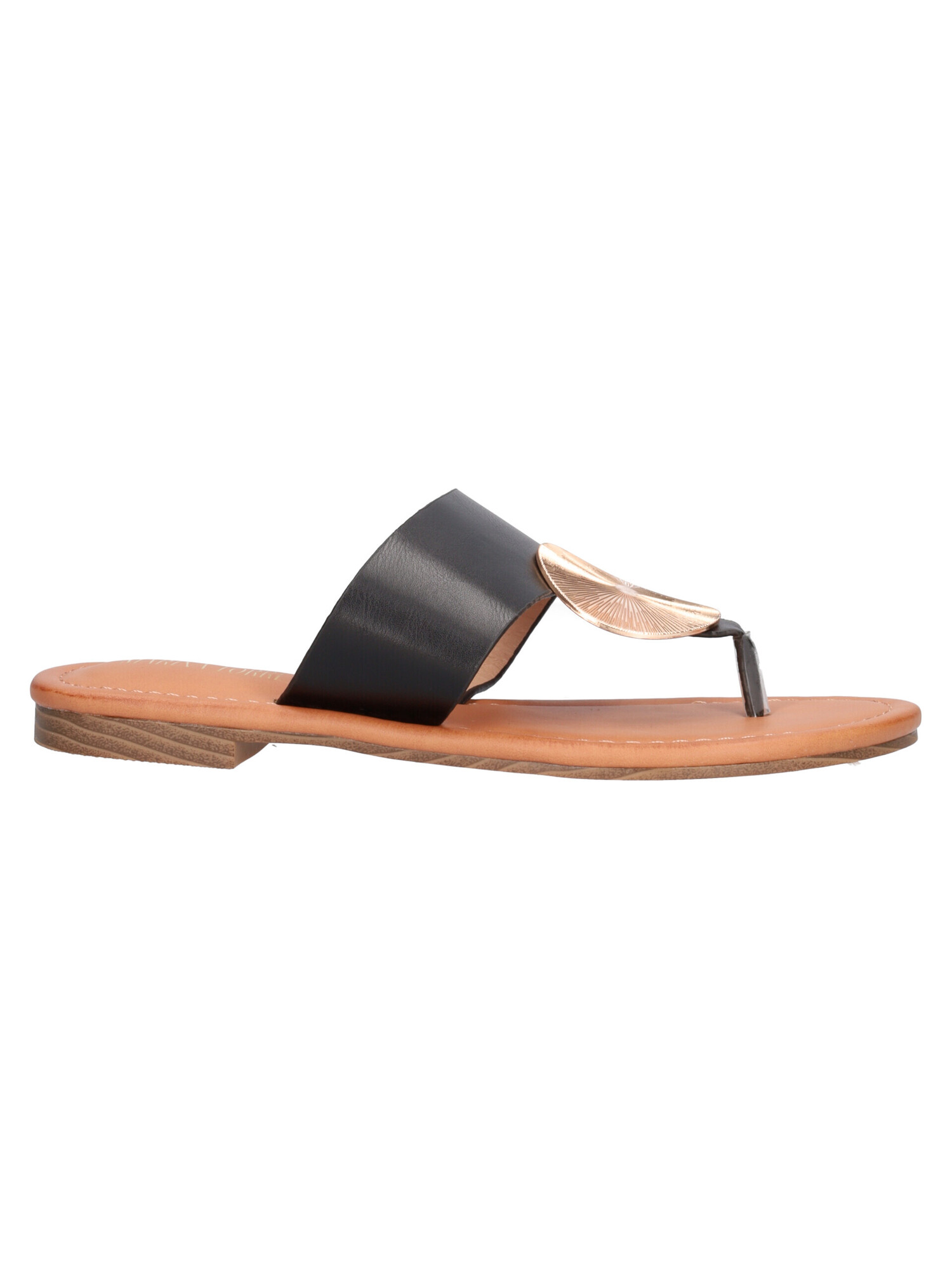 Sandalo infradito Marina Torres da donna in ecopelle nera con dettaglio dorato, sottopiede imbottito sempre in ecopelle e fondo in gomma.