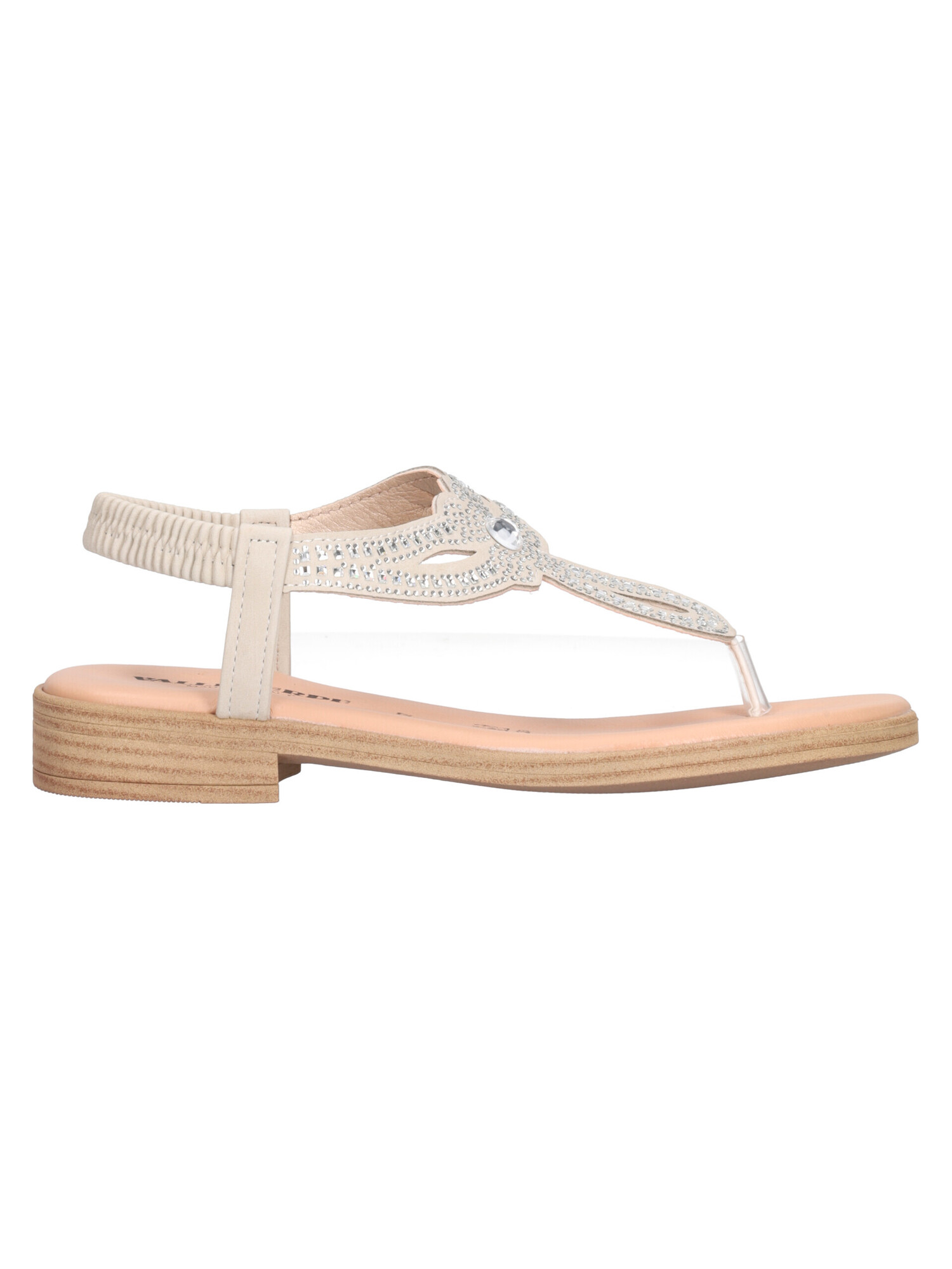 Sandalo infradito Valleverde da donna in ecopelle avorio con strass, sottopiede in vera pelle e fondo in gomma.