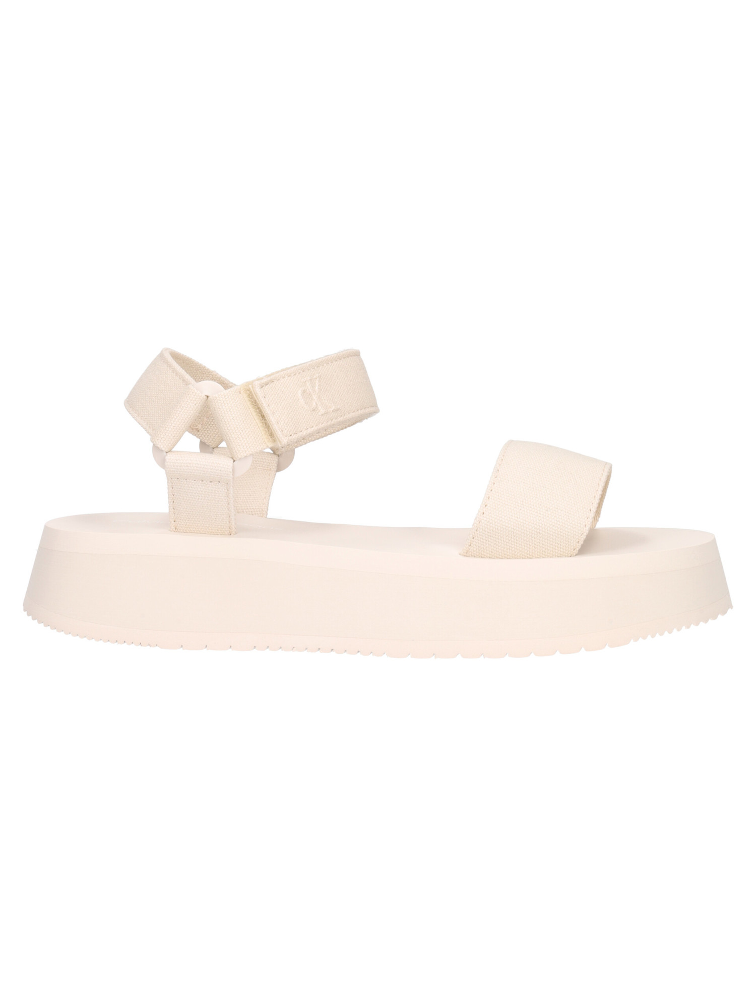 Sandalo Calvin Klein da donna in tessuto avorio con fascia regolabile, sottopiede e fondo in gomma con platform di 4cm.