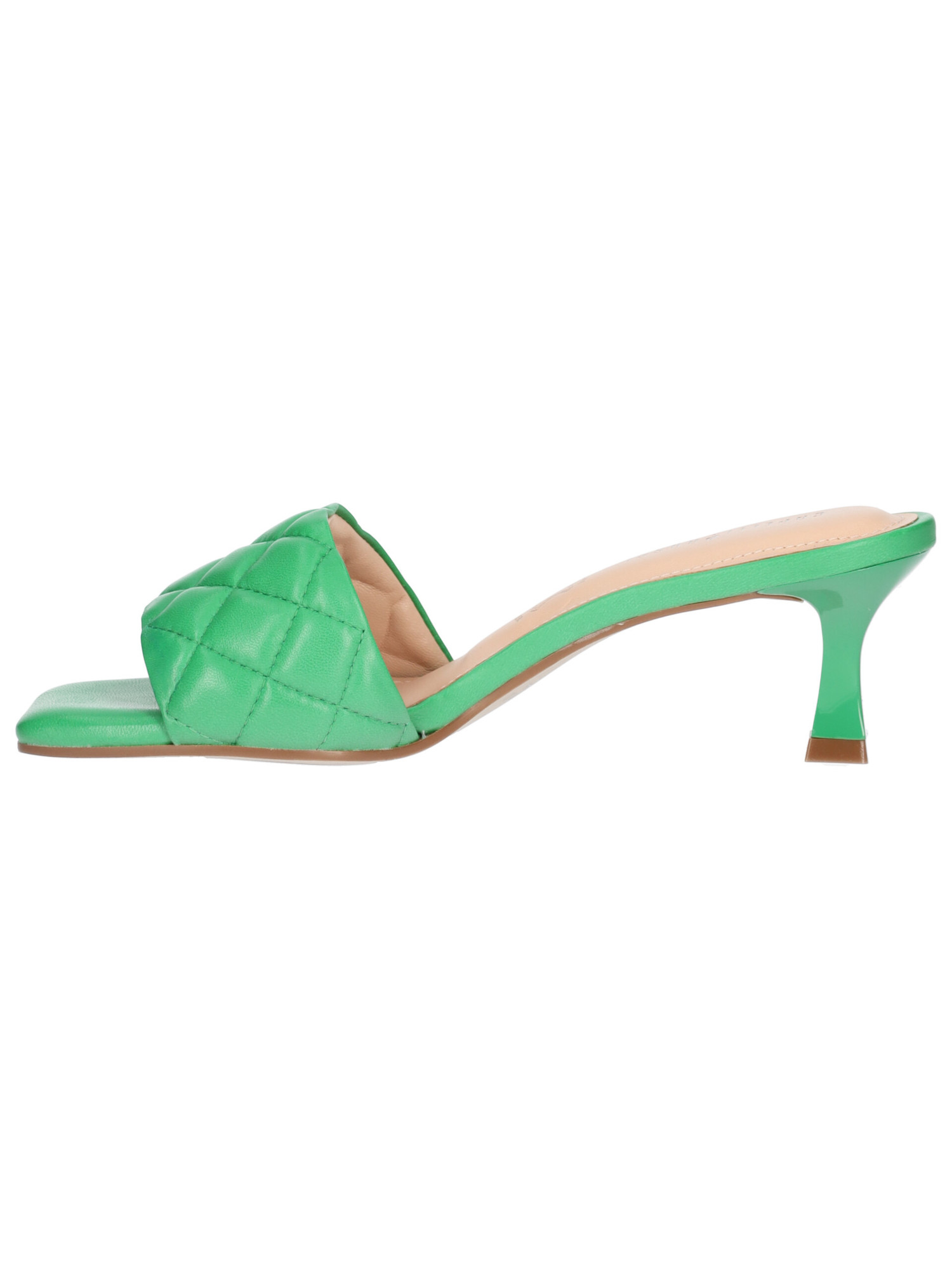 Sabot Capelli Rossi da donna in pelle trapuntata verde con sottopiede imbottito in pelle e fondo in gomma con tacco di 6cm.