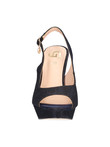 Sandalo elegante Gold&Gold da donna in tessuto nero glitter con sottopiede imbottito in vera pelle e fondo in gomma tacco di 13cm con plateau di 3cm.
