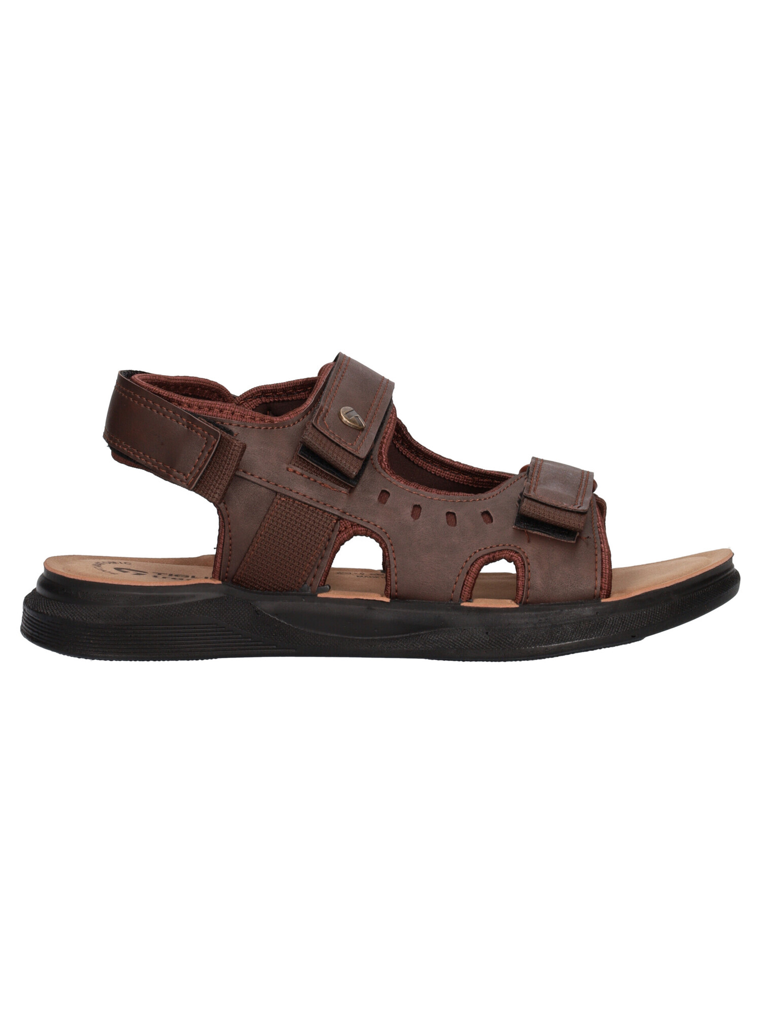 Sandalo Tiglio da uomo in ecopelle testa di moro con stretch regolabili, fodera in tessuto e sottopiede anatomico sempre in ecopelle fondo in gomma.
