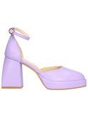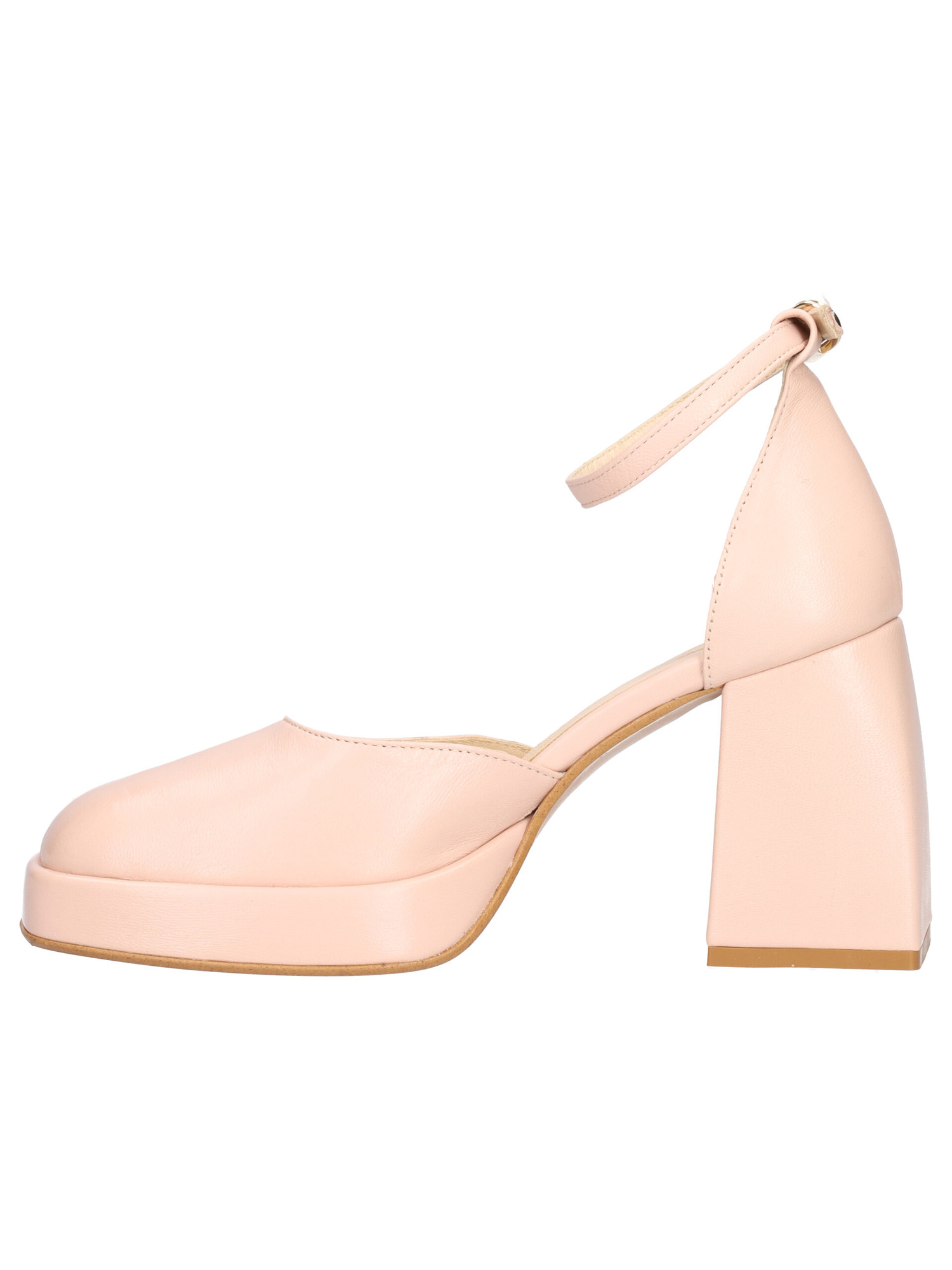 Scarpa con pumta quadrata Hilya da donna in pelle cipria con cinturino regolabile, sottopiede sempre in pelle e fondo in gomma. Scarpa con tacco di 9cm e plateau di 2cm.