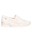 Scarpa slip on Valleverde da donna in pelle traforata bianca con fodera in tessuto, sottopiede in pelle e fondo in gomma zeppa di 3,5cm.