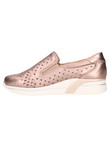 Scarpa slip on Valleverde da donna in pelle traforata bronzo con fodera in tessuto, sottopiede in pelle e fondo in gomma zeppa di 3,5cm.