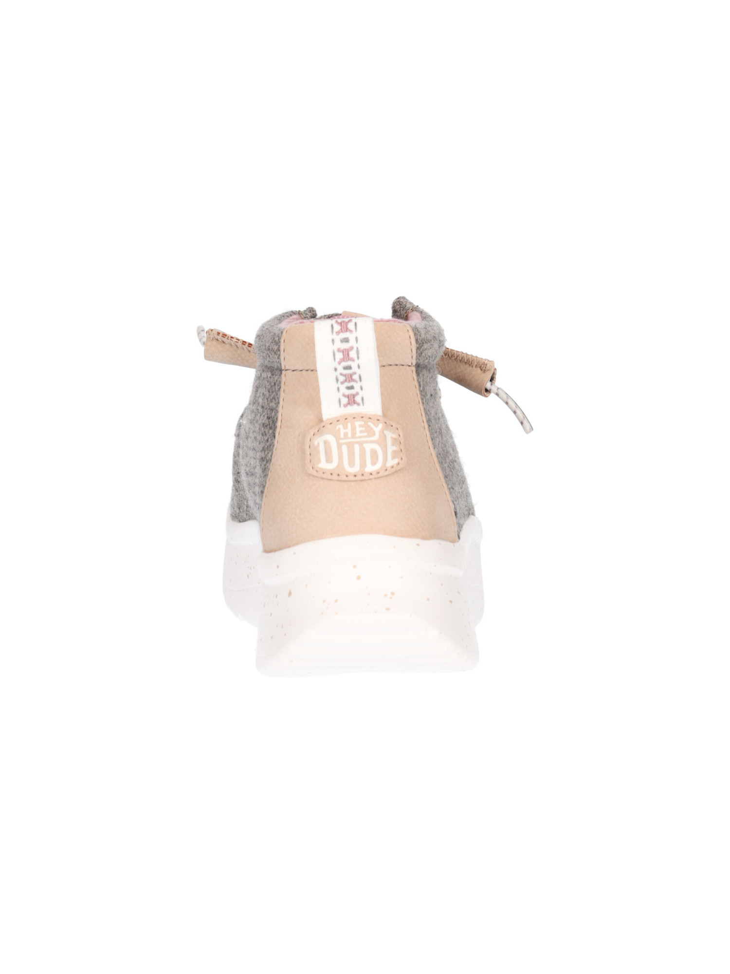 Scarpa slip on Hey Dude Wendy da donna in tessuto grigio con dettaglio posteriore in ecopelle, fodera in caldo tessuto, sottopiede estraibile fondo in gomma antiscivolo e rialzo di 4cm.